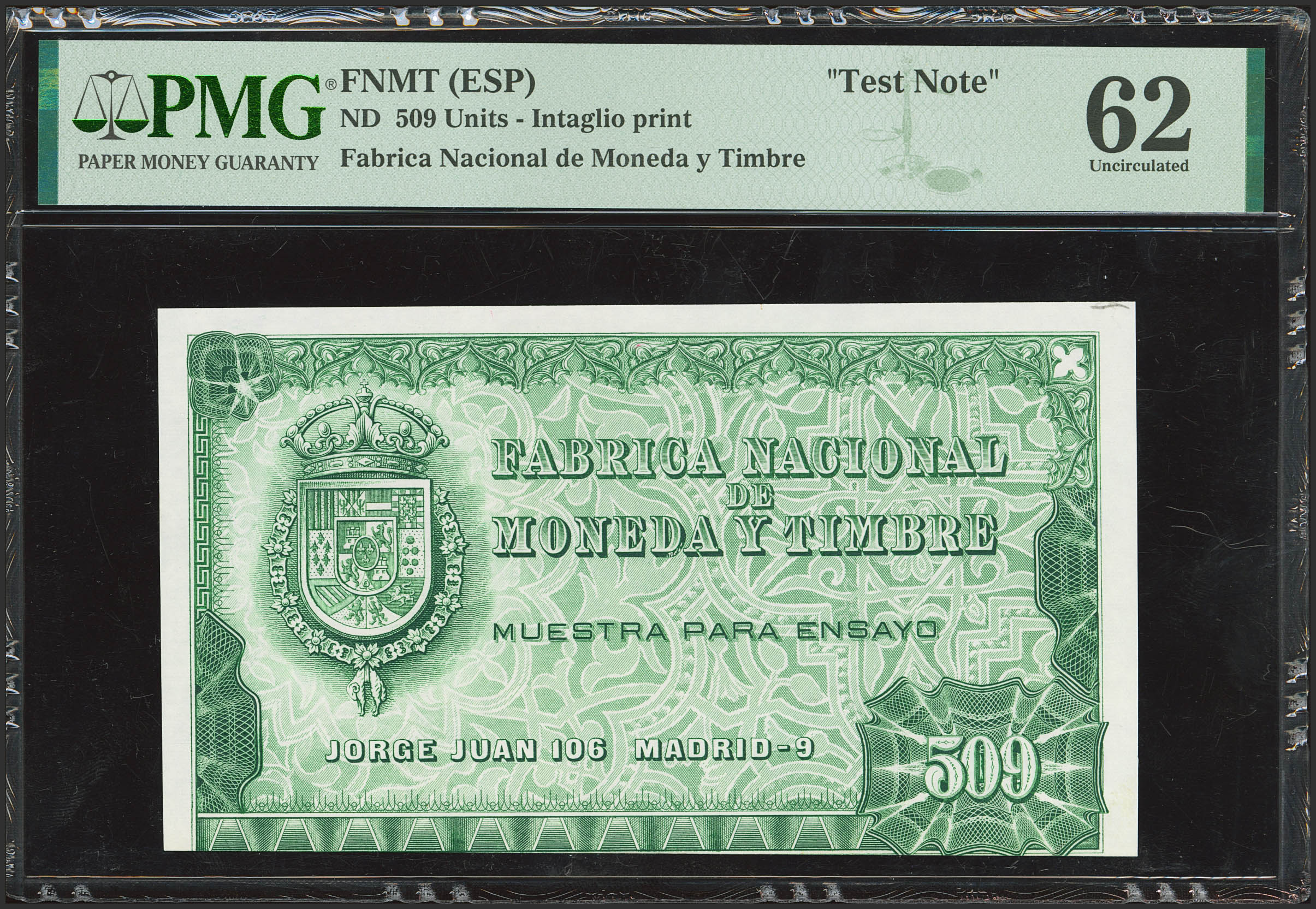 (1970ca). Assay sample, number 509, made at the FNMT, obverse only, in green. Uncirculated. Encapsulated PMG62 (trimmed).