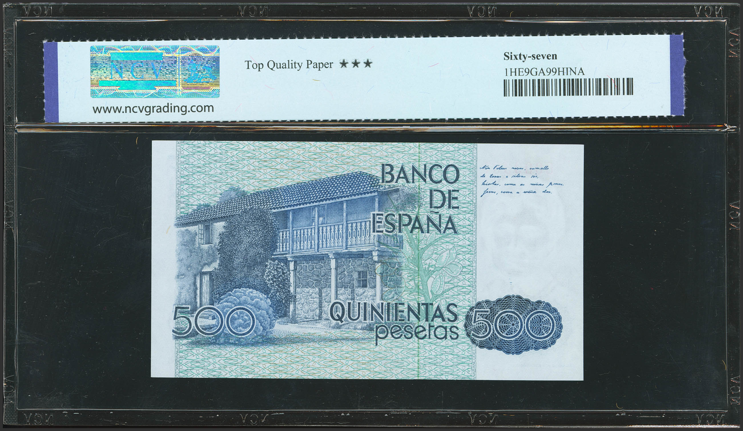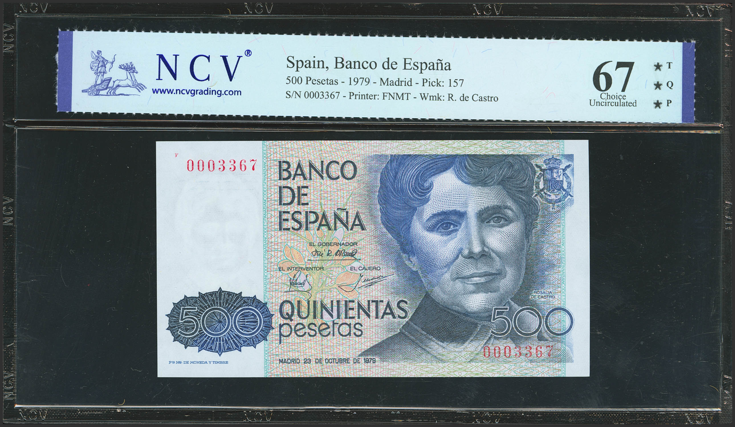 500 Pesetas. October 23, 1979. No serial number. (Edifil 2023: 476, Pick: 157). Uncirculated. NCV67TQP encapsulation.