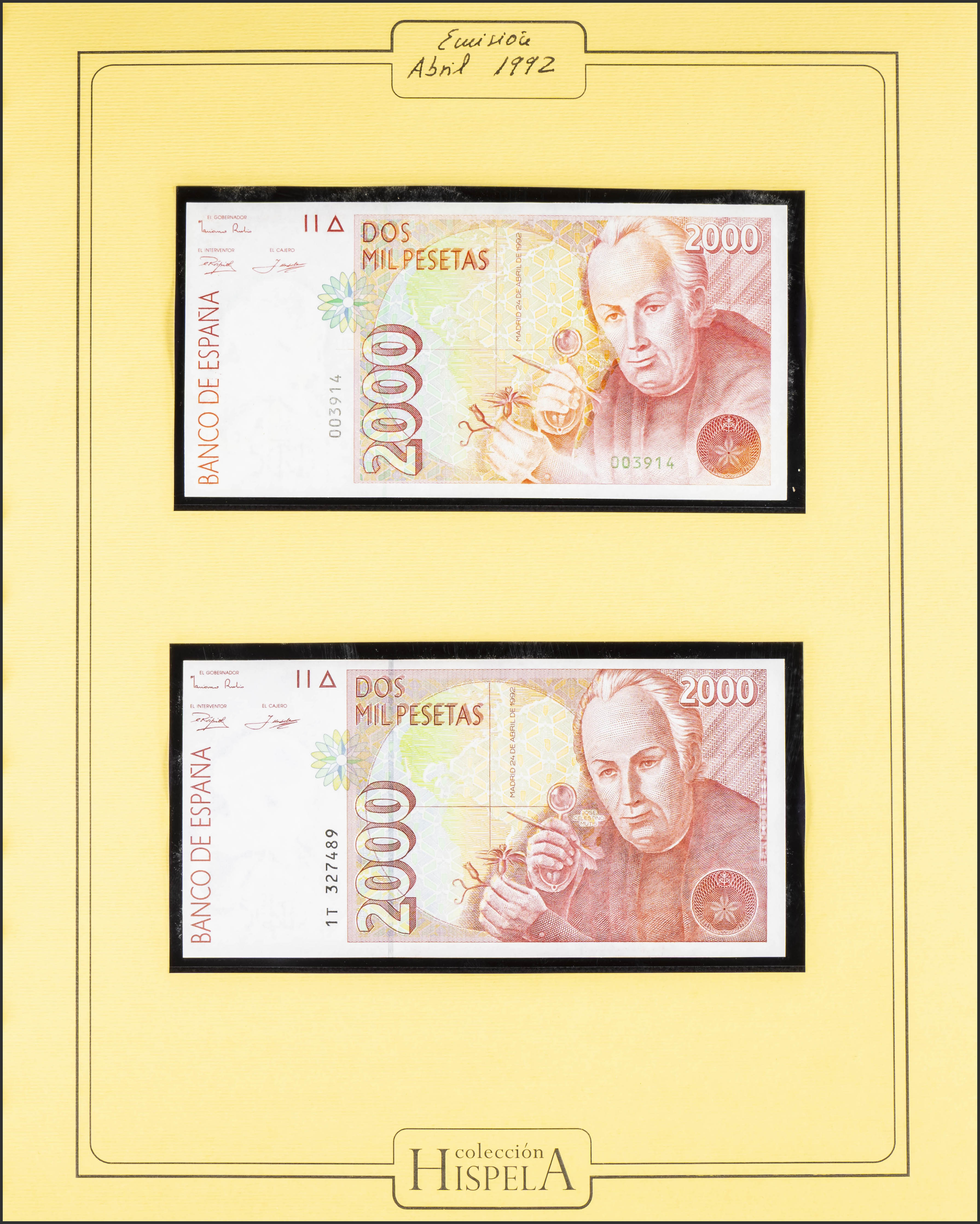 English Complete collection from 1975 to 1992 corresponding to the reign of Juan Carlos I, all banknotes without serial numbers and in high condition. TO BE EXAMINED.