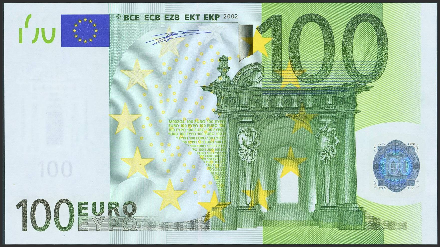 English 100 Euros. January 1, 2002. Duisenberg signature. Series V (Spain). (Edifil 2023: 490). Uncirculated.