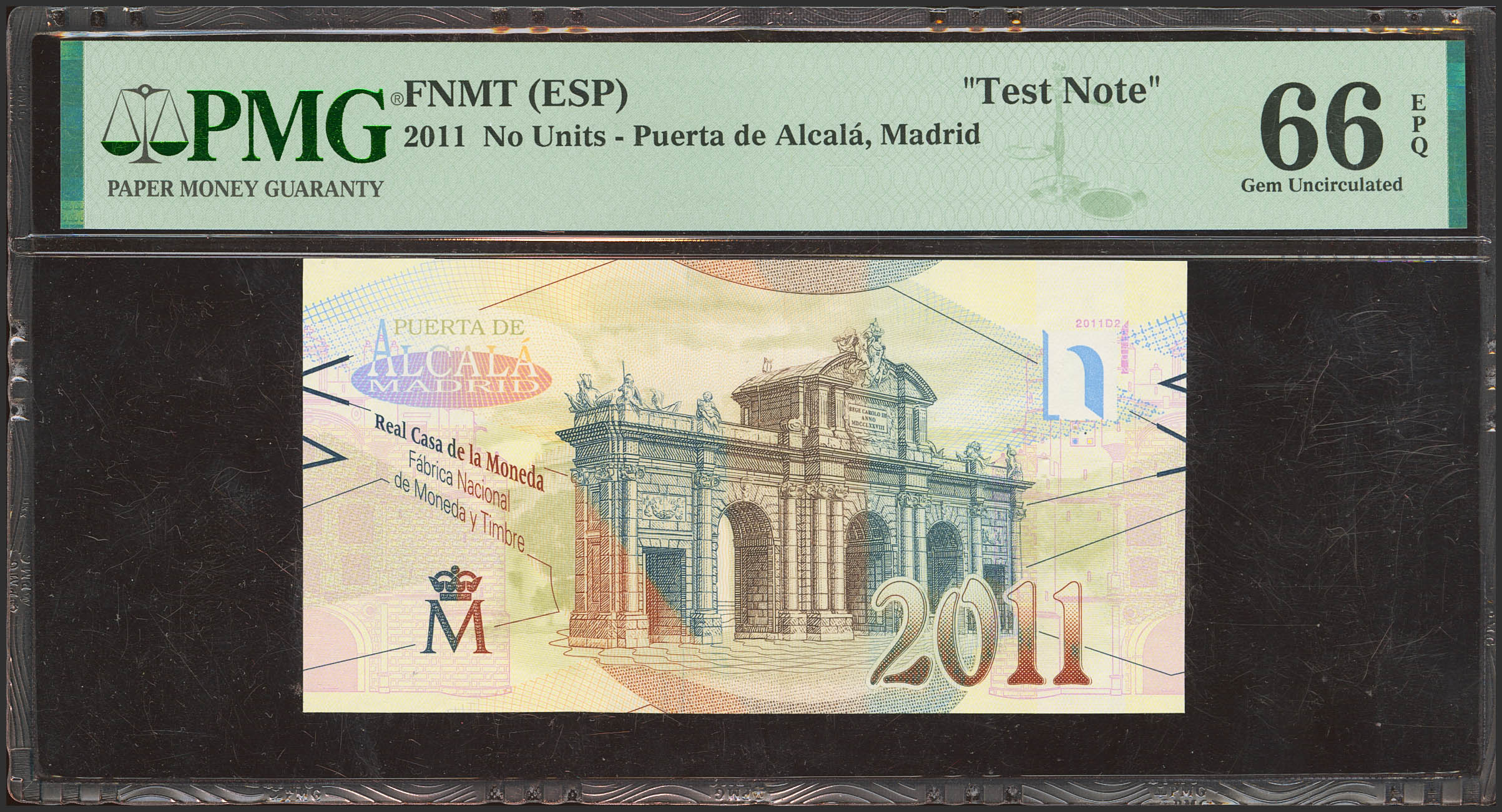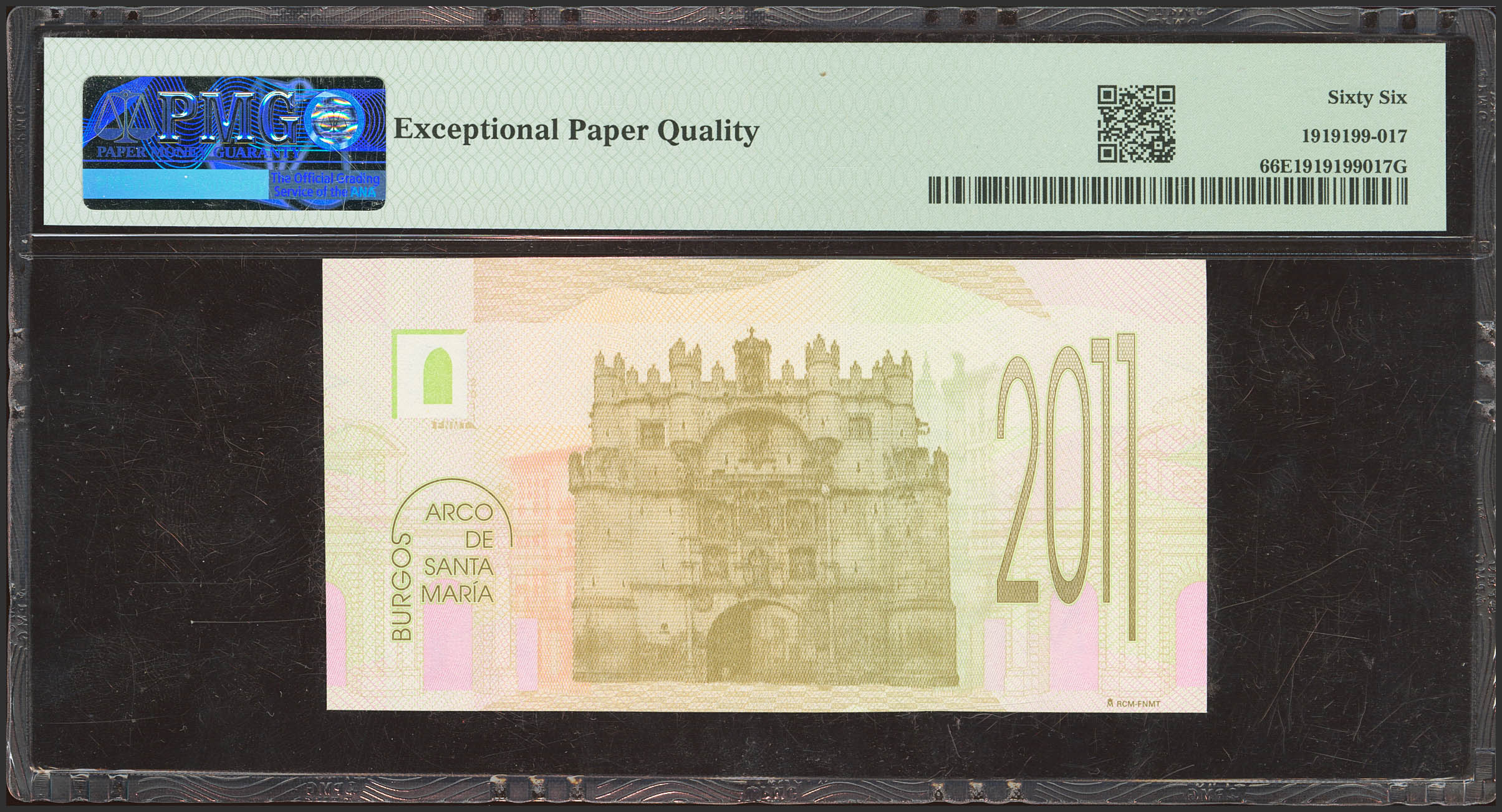 Proof banknote from the FNMT, issued in 2011. (Edifil 2023: 3). Very rare, original finish. Uncirculated. Encapsulated PMG66EPQ.