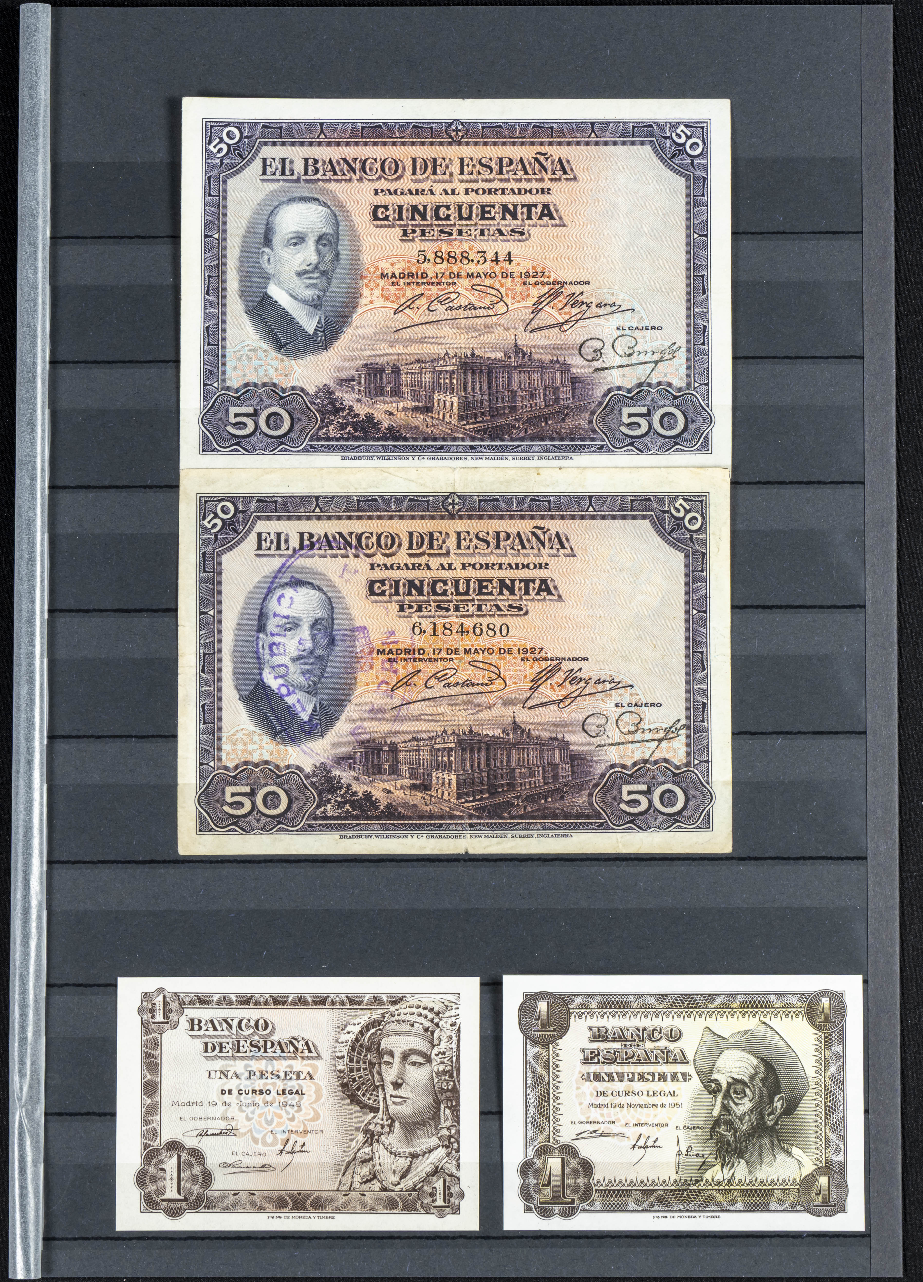 English Set of 8 Bank of Spain banknotes, from different issues and in various qualities. TO BE EXAMINED.