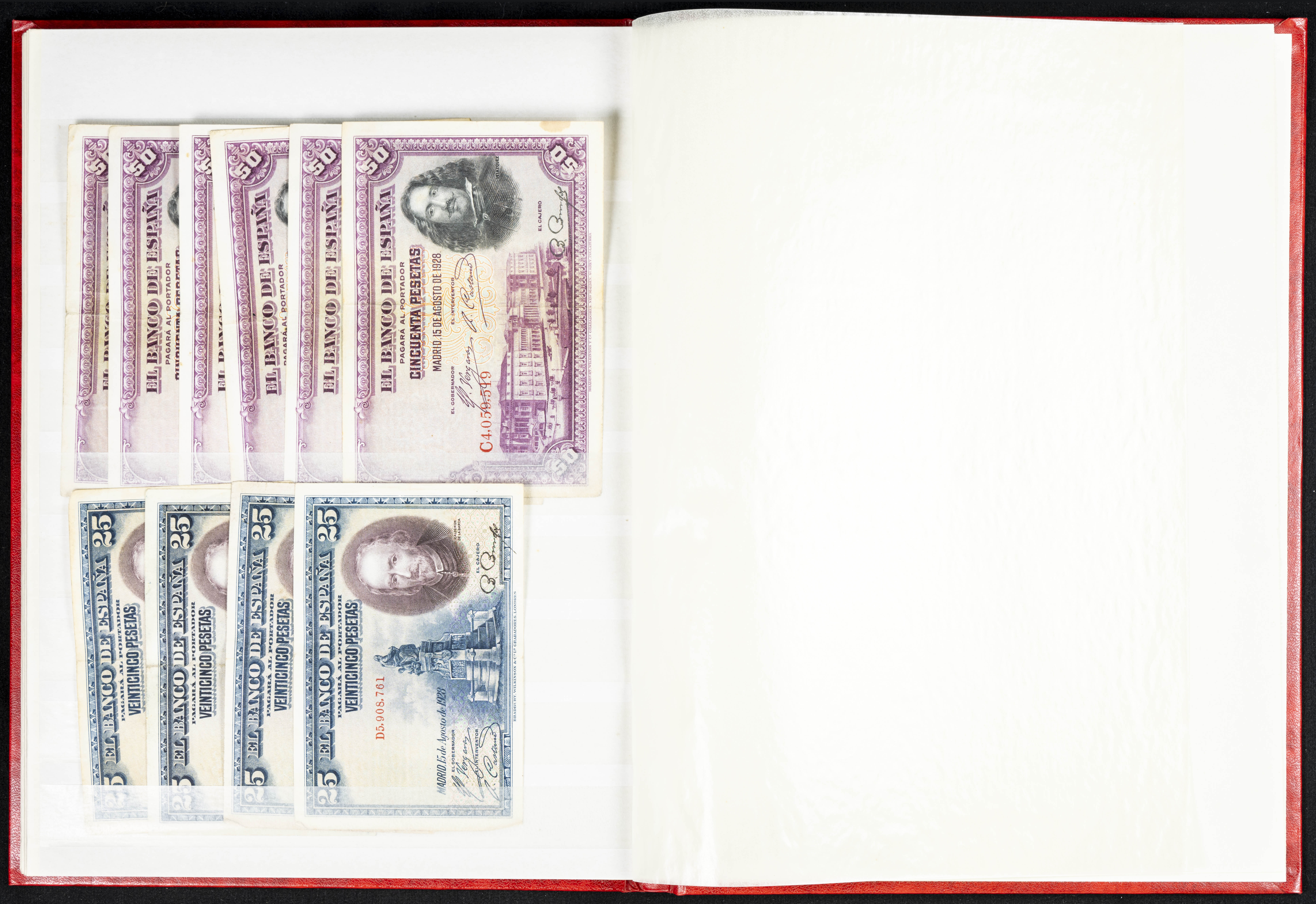Collection of over 35 Bank of Spain banknotes, from different issues and in various qualities. TO BE EXAMINED.