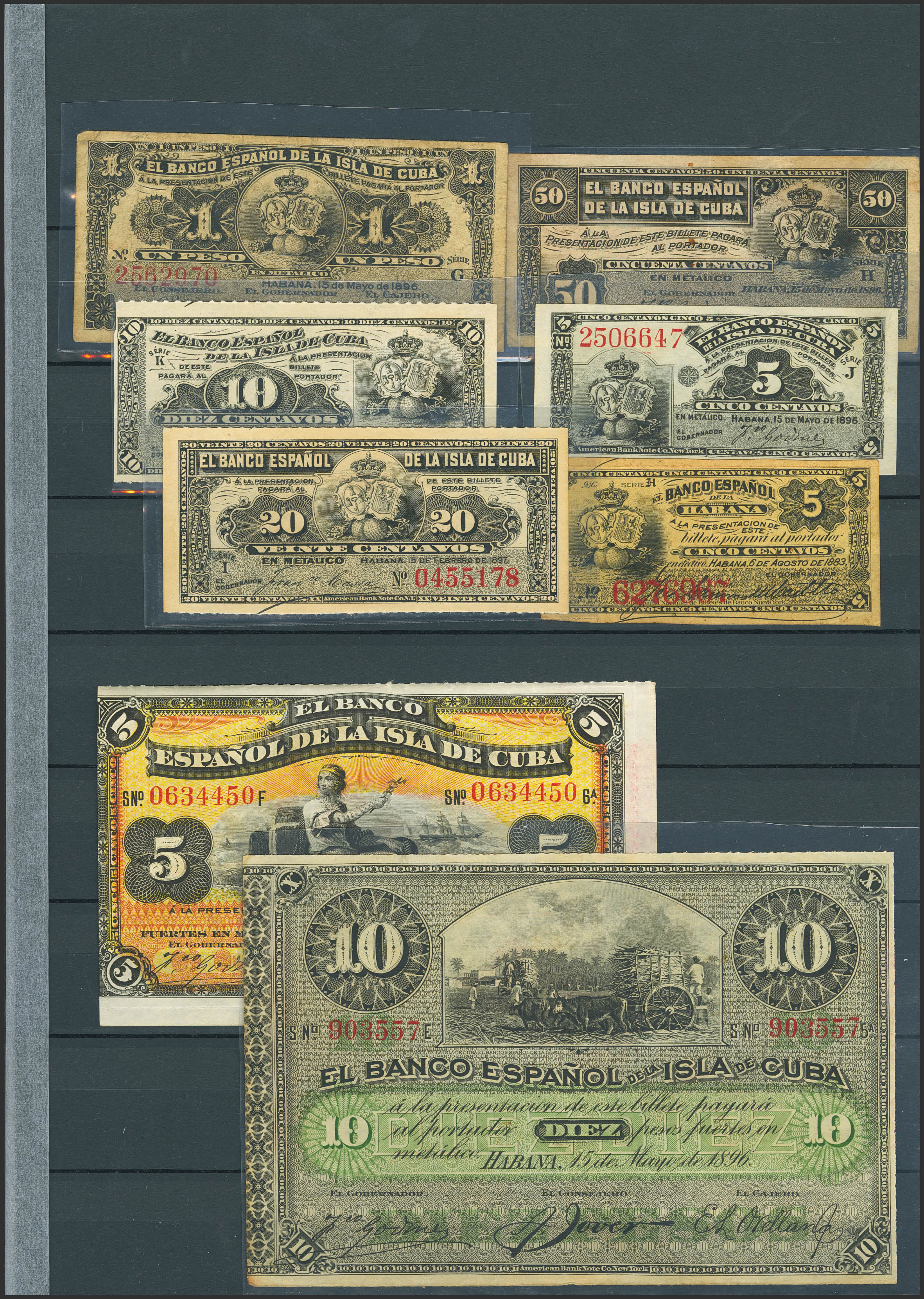 English Spanish Bank of the Island of Cuba. Set of 8 banknotes from different issues and in various qualities. To be examined.