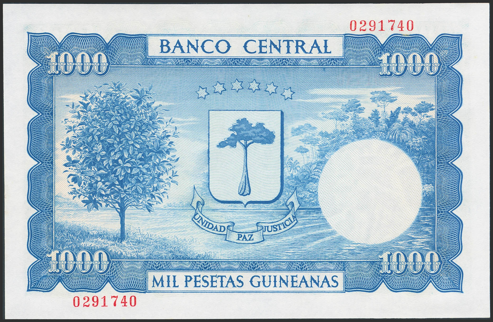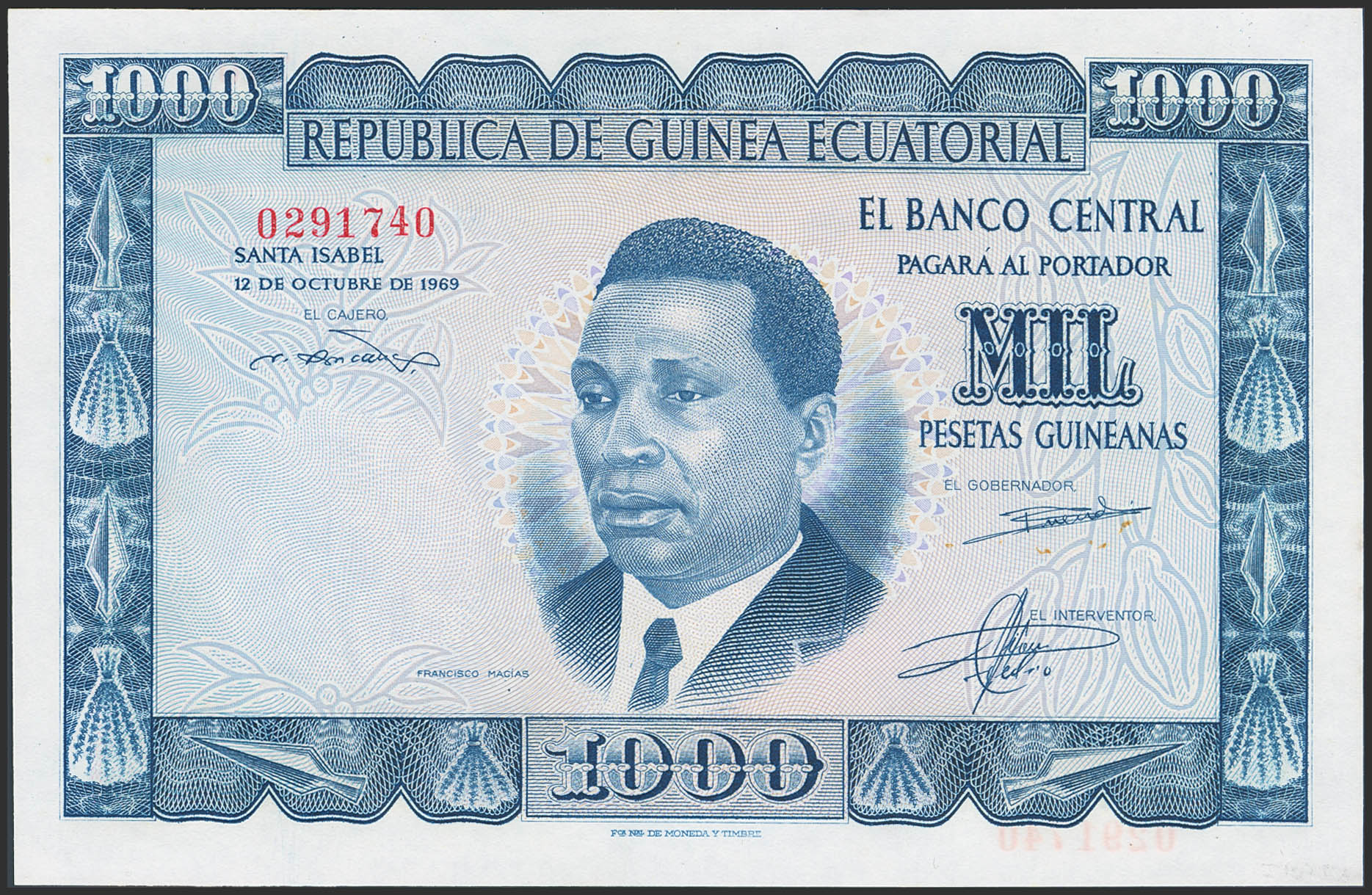 EQUATORIAL GUINEA. 1000 Pesetas. October 12, 1969. No serial number. (Edifil 2023: 3, Pick: 3). Rare, original finish. UNC.