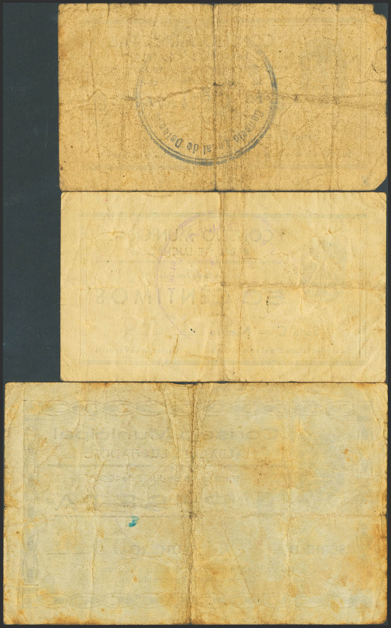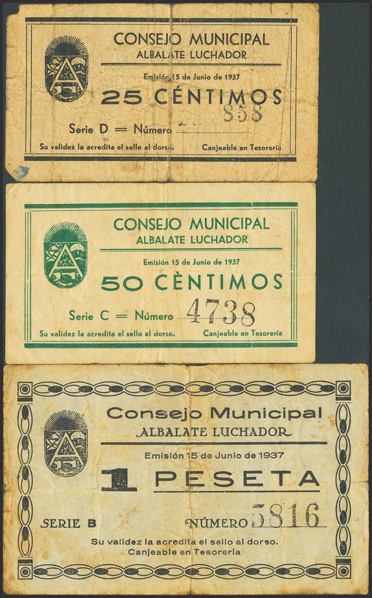 ALBALATE FIGHTER (TERUEL). 25 Centimos, 50 Centimos and 1 Peseta. June 15, 1937. (González: 173, 174, 175). Unusual. Good-/Good Very Fine.