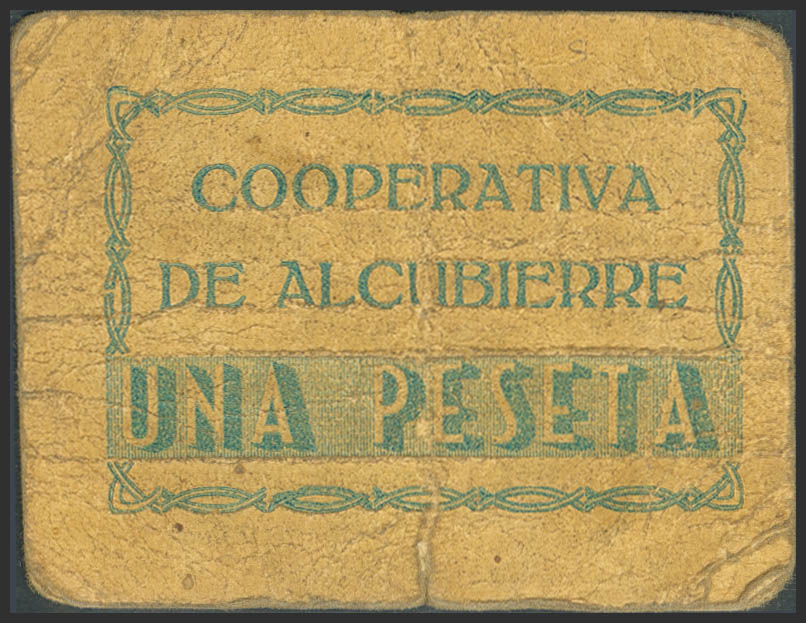 ALCUBIERRE (HUEUncirculatedA). 1 Peseta. (1937ca). (González: 397). Queer. Fine.