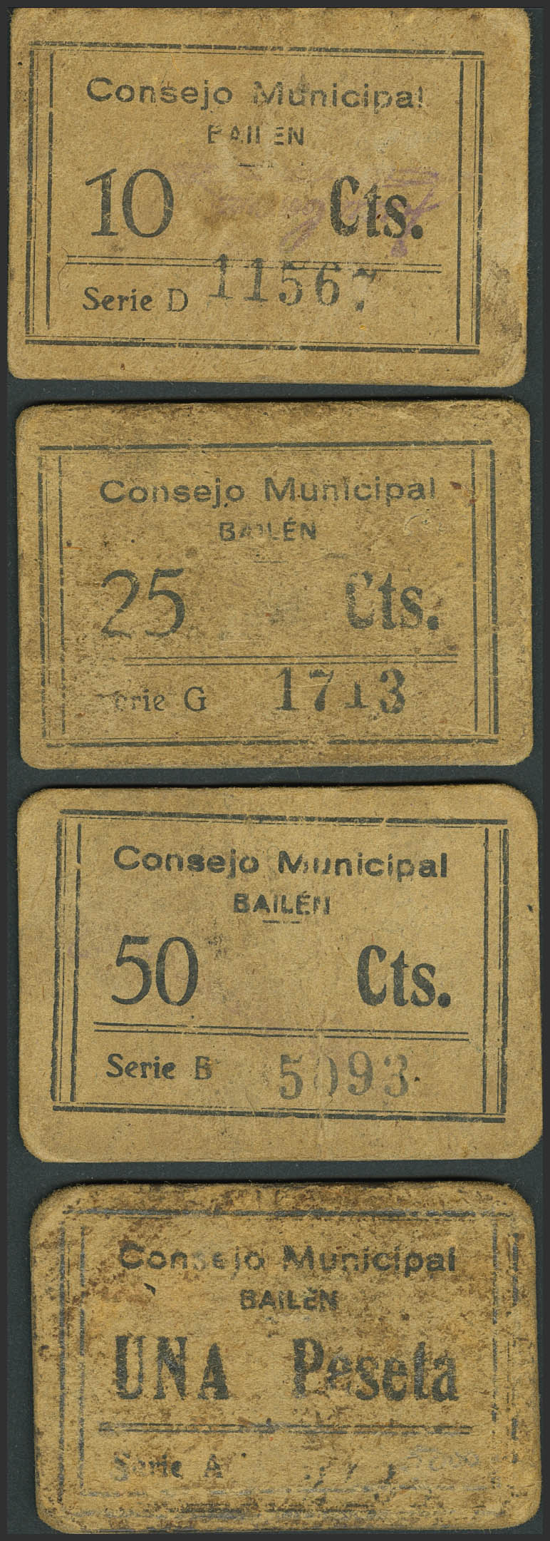 BAILEN (JAEN). 10 Centimos, 25 Centimos, 50 Centimos and 1 Peseta. (circa 1937). Series D, C, B, and A, respectively. (González: 848/51). Rare complete series. VF-.
