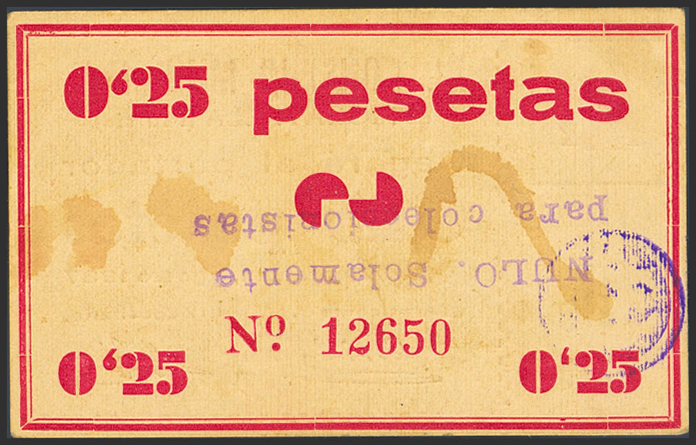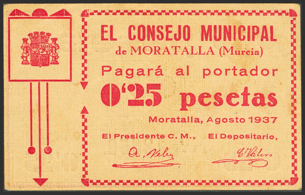 English MORATALLA (MUGoodIA). 25 Centimos. August 1937. (González: 3709). Unusual. VF+.