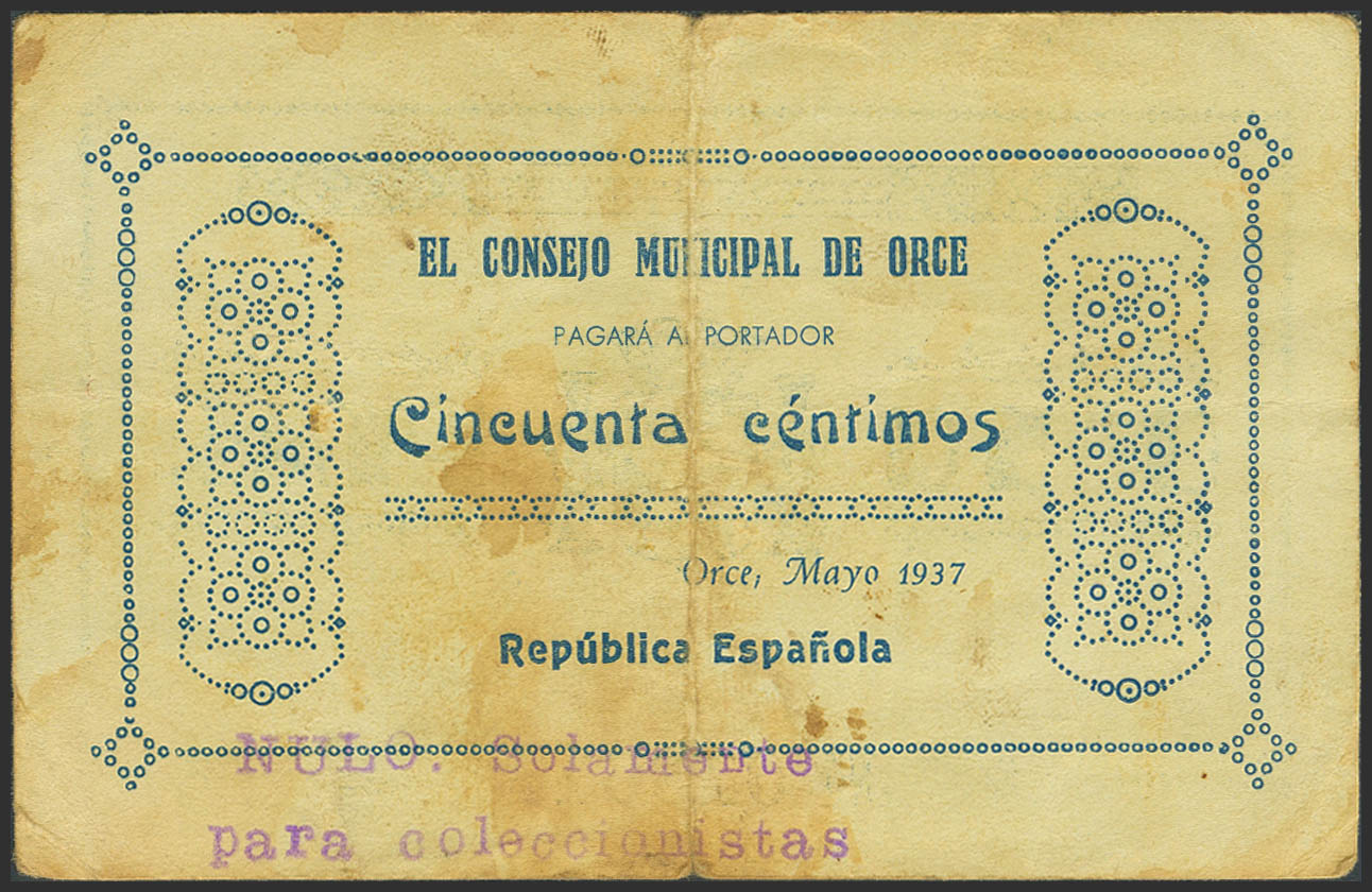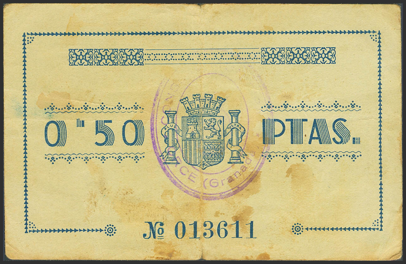 English OGoodE (GRANADA). 50 Centimos. May 1937. (González: 3961). Very rare. VF-.