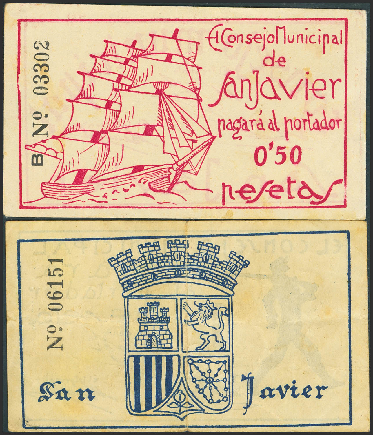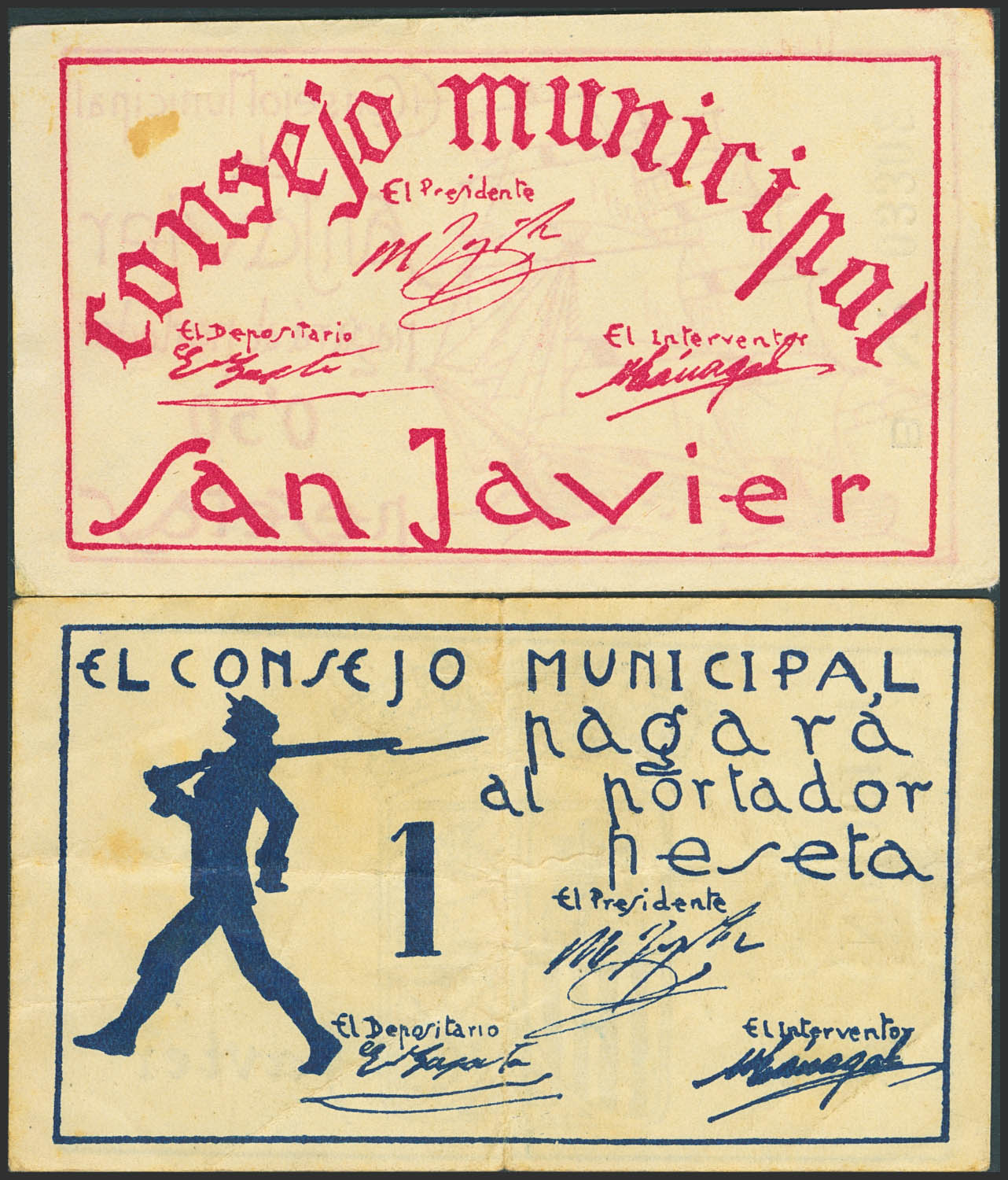 SAN JAVIER (MUGoodIA). 25 Centimos and 1 Peseta. (circa 1937). (González: 4680/81). Unusual complete series. EF-/Very Fine-.