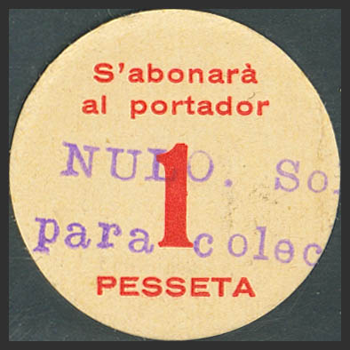BRAFIM (TARRAGONA). 1 Peseta. (circa 1937). (González: 7195). Very rare, especially in this condition. Uncirculated-.