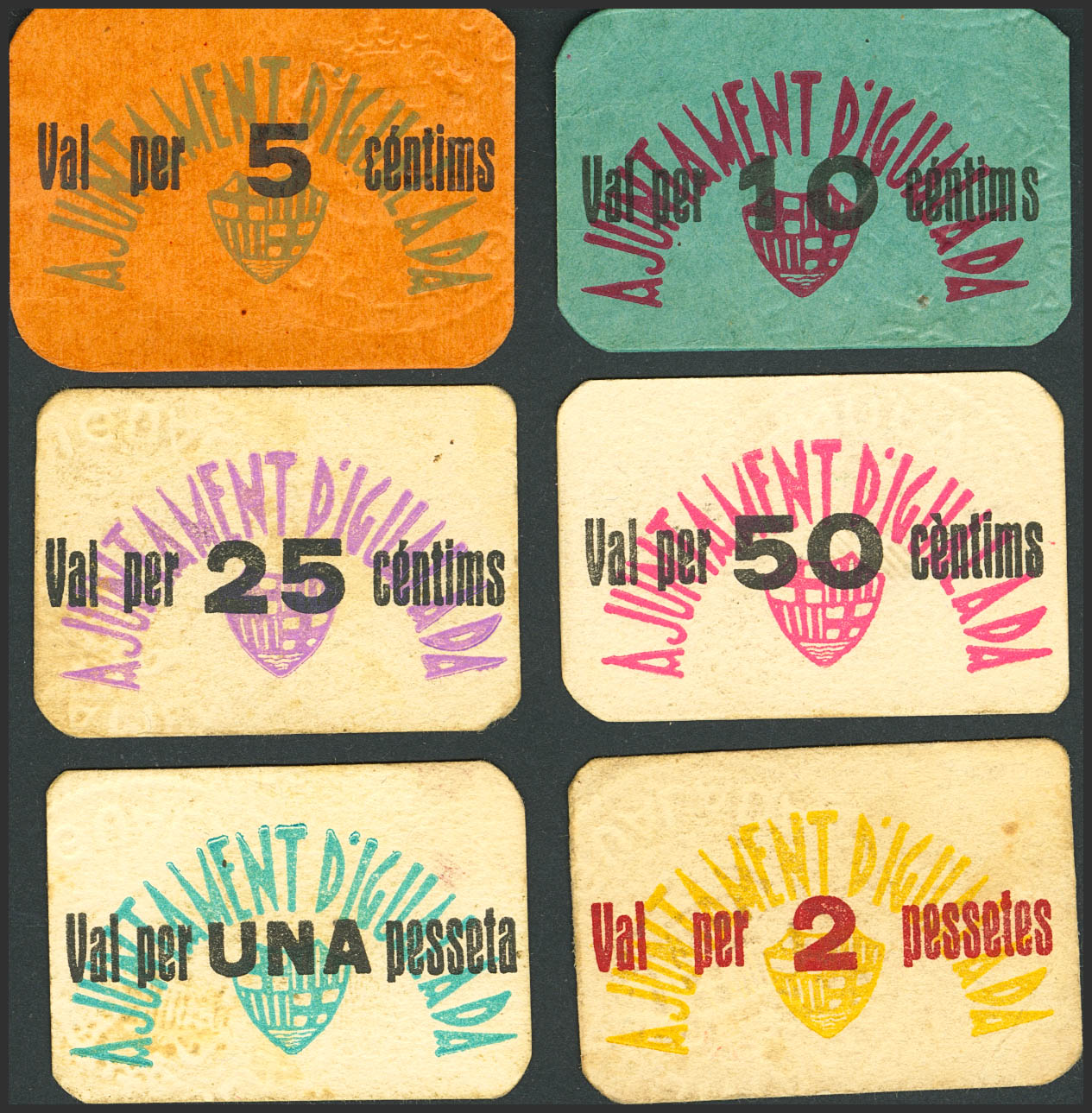 IGUALADA (BAGoodELONA). 5 Centimos, 10 Centimos, 25 Centimos, 50 Centimos, 1 Peseta and 2 Pesetas. (circa 1937). (González: 8247, 8249, 8250, 8252, 8253, 8254). Unusual, especially in this condition. Uncirculated--/Good Extremely Fine.