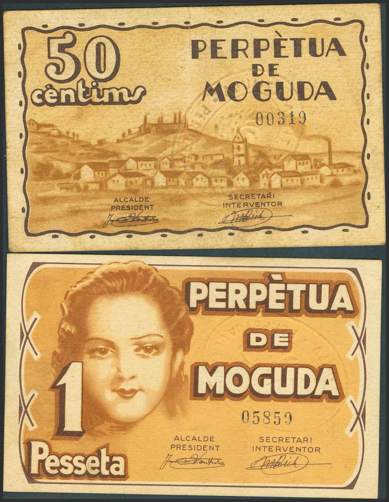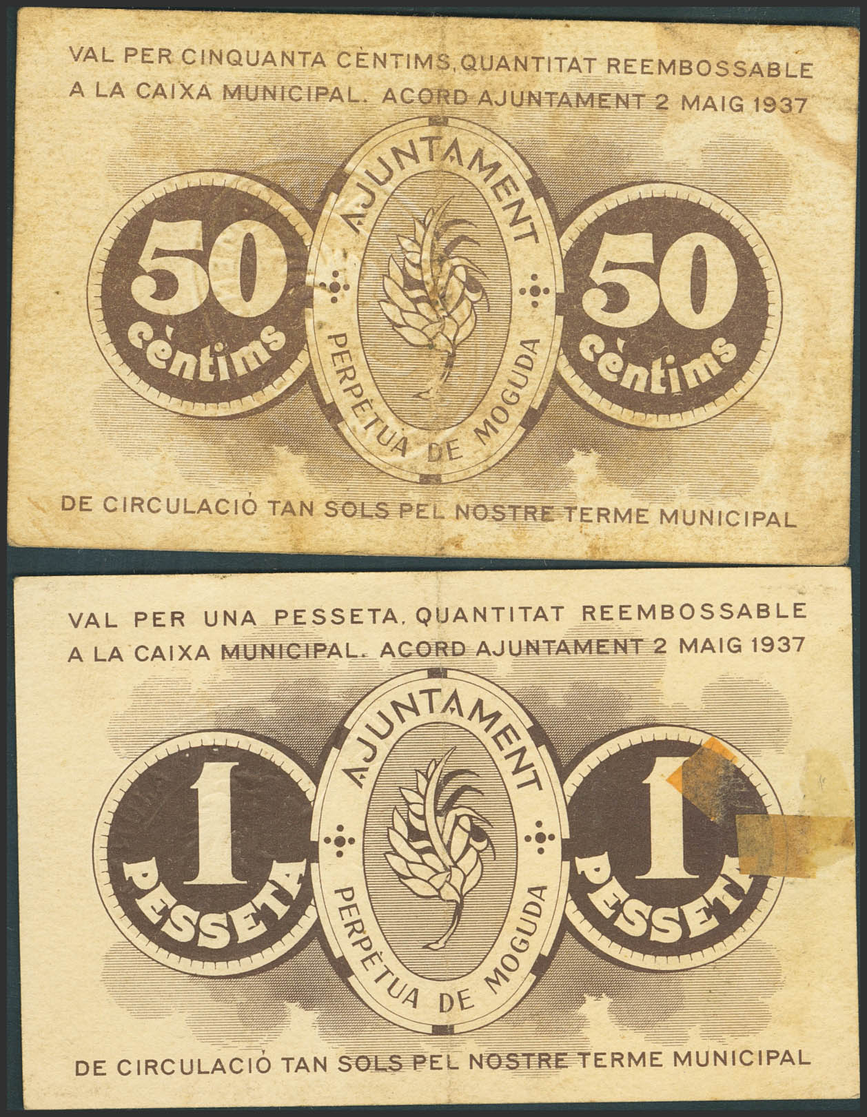 PERPETUA DE MOGUDA (BAGoodELONA). 50 Centimos and 1 Peseta. May 2, 1937. (González: 9205/06). Complete series. VF+.