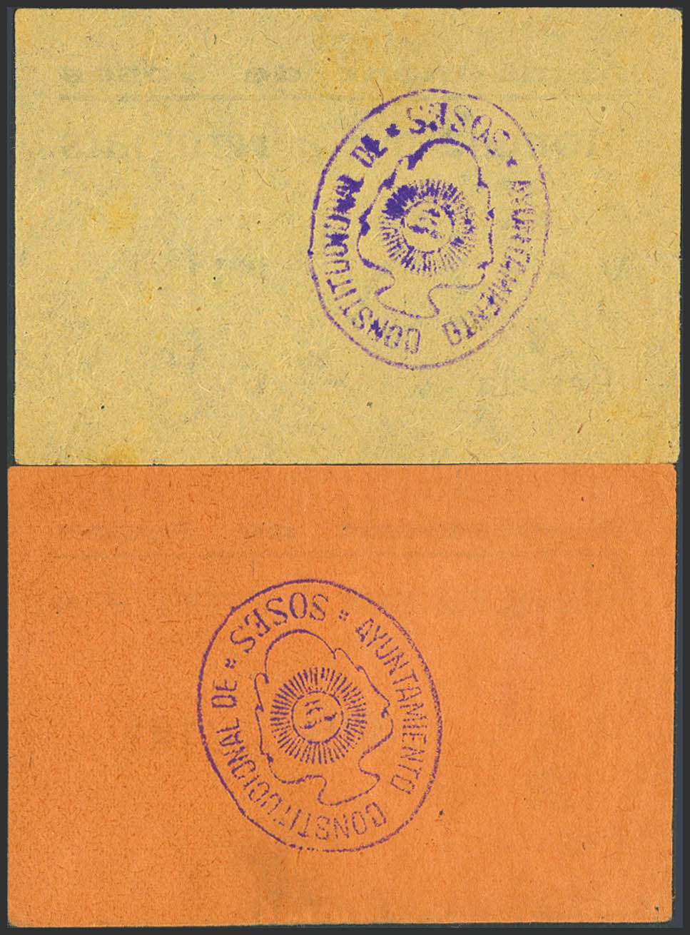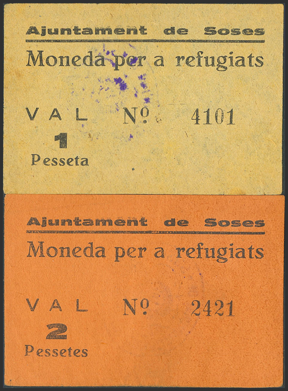 SOSES (LERIDA). 1 Peseta and 2 Pesetas. (1937ca). (González: 10054, 10055). Queer. Good Very Fine.