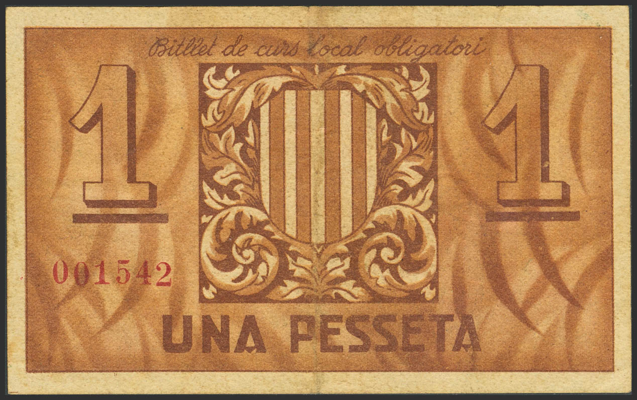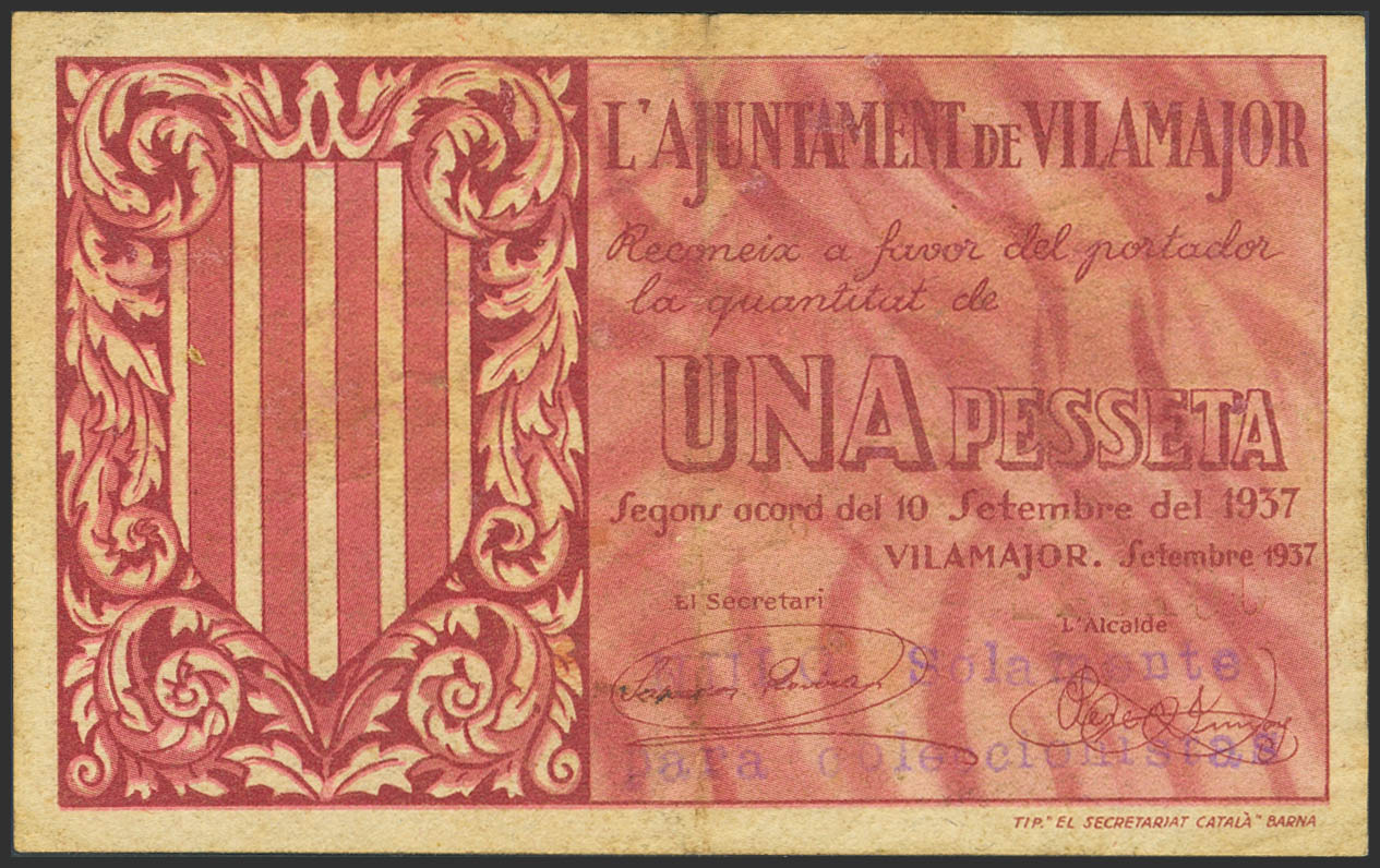 VILAMAJOR (BAGoodELONA). 1 Peseta. October 10, 1937. (González: 10770). Queer. Very Fine.