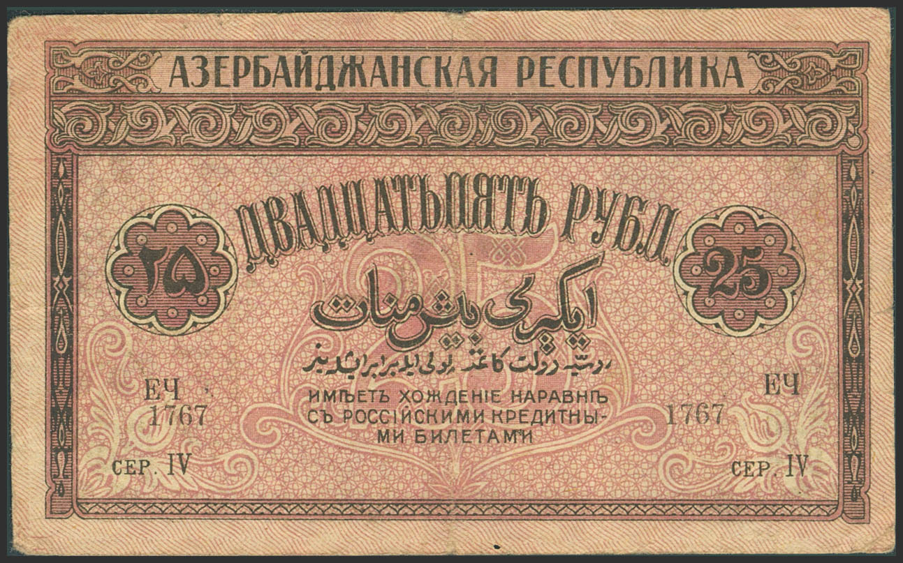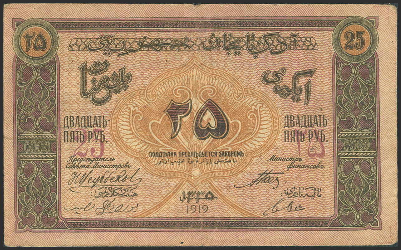 AZERBAIJAN. 25 Rubley. 1919. Azerbaijanskaya Respublika. (Pick: 1). Very Fine.