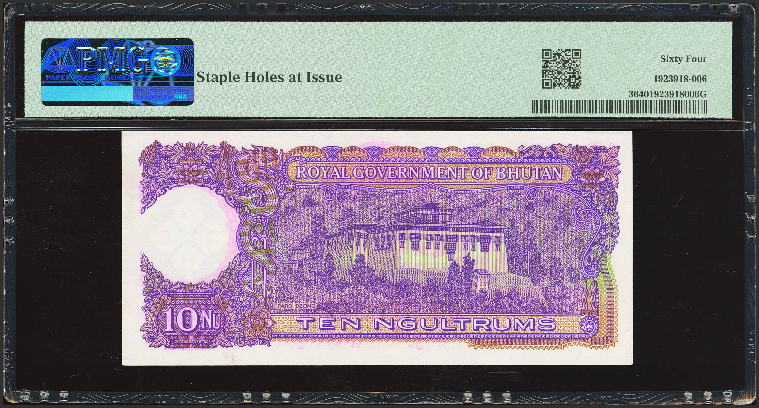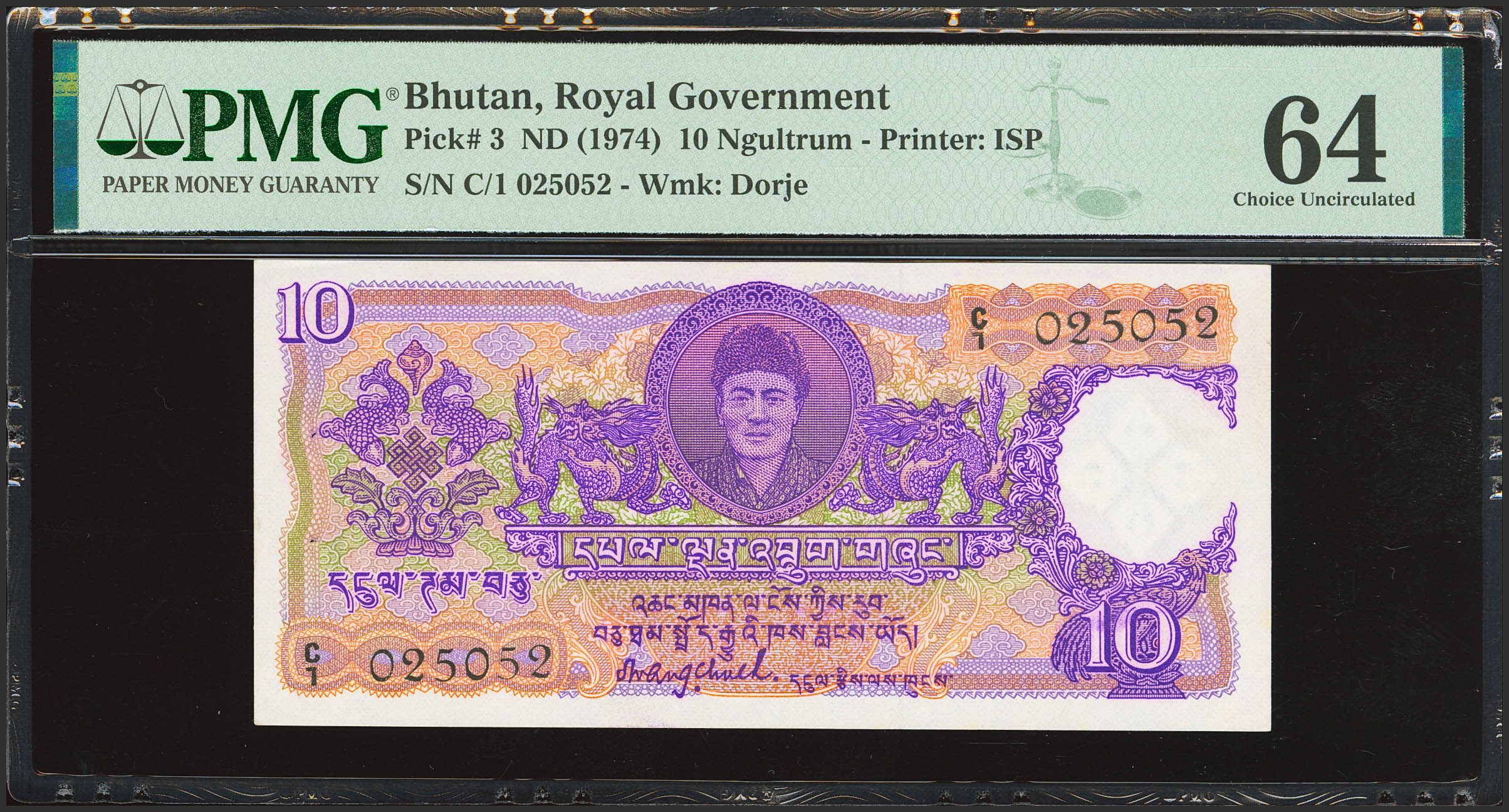 BHUTAN. 10 Ngultrum. (1974ca). Royal Government. (Pick: 3). PMG64 (staple holes at Issue).