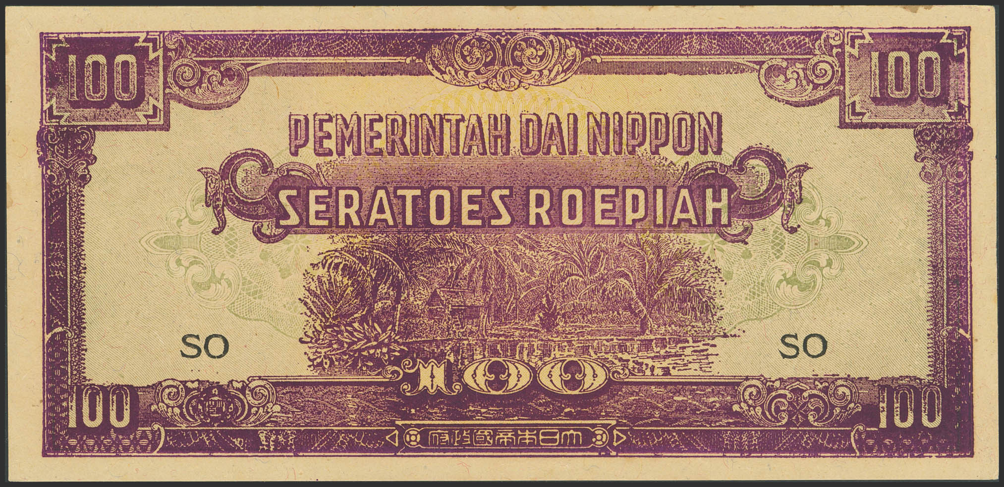 JAPANESE OCCUPATION-NETHERLANDS INDIES. 100 Roepiah. (1944ca). Japanese Government. (Pick: 126b). More than Extremely Fine.