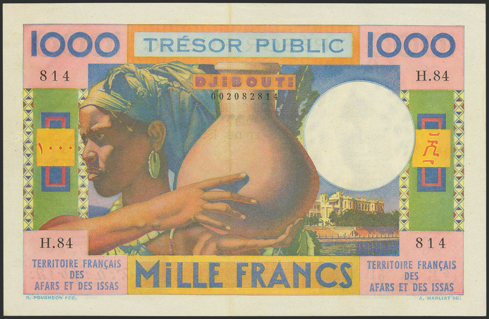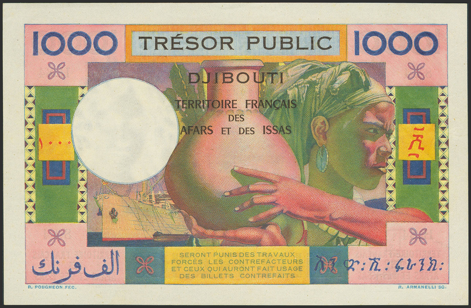 FRENCH AFARS AND ISSAS TERRITORY. 1000 Francs. (1974ca). Trésor Public. Territoire Français des Afars et des Issas. (Pick: 32). About Uncirculated.