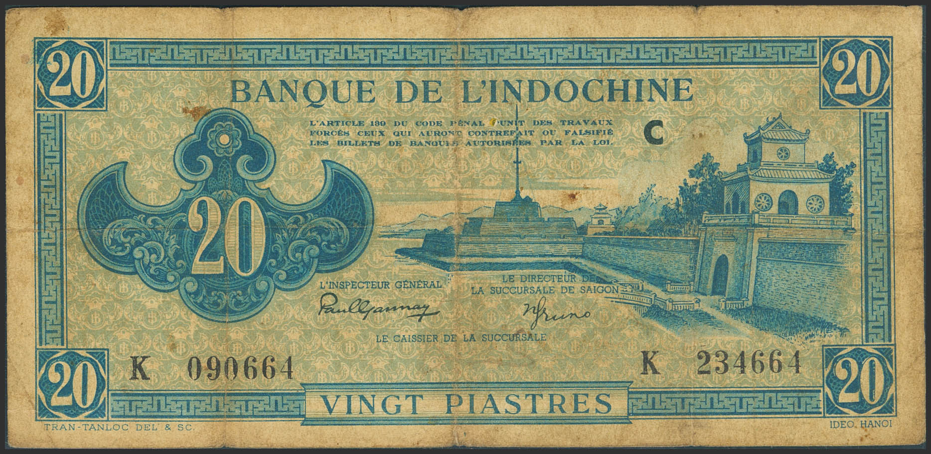 FRENCH INDOCHINA. 20 Piastres. (1942ca). Banque de L'Indochine. (Pick: 65). Fine.