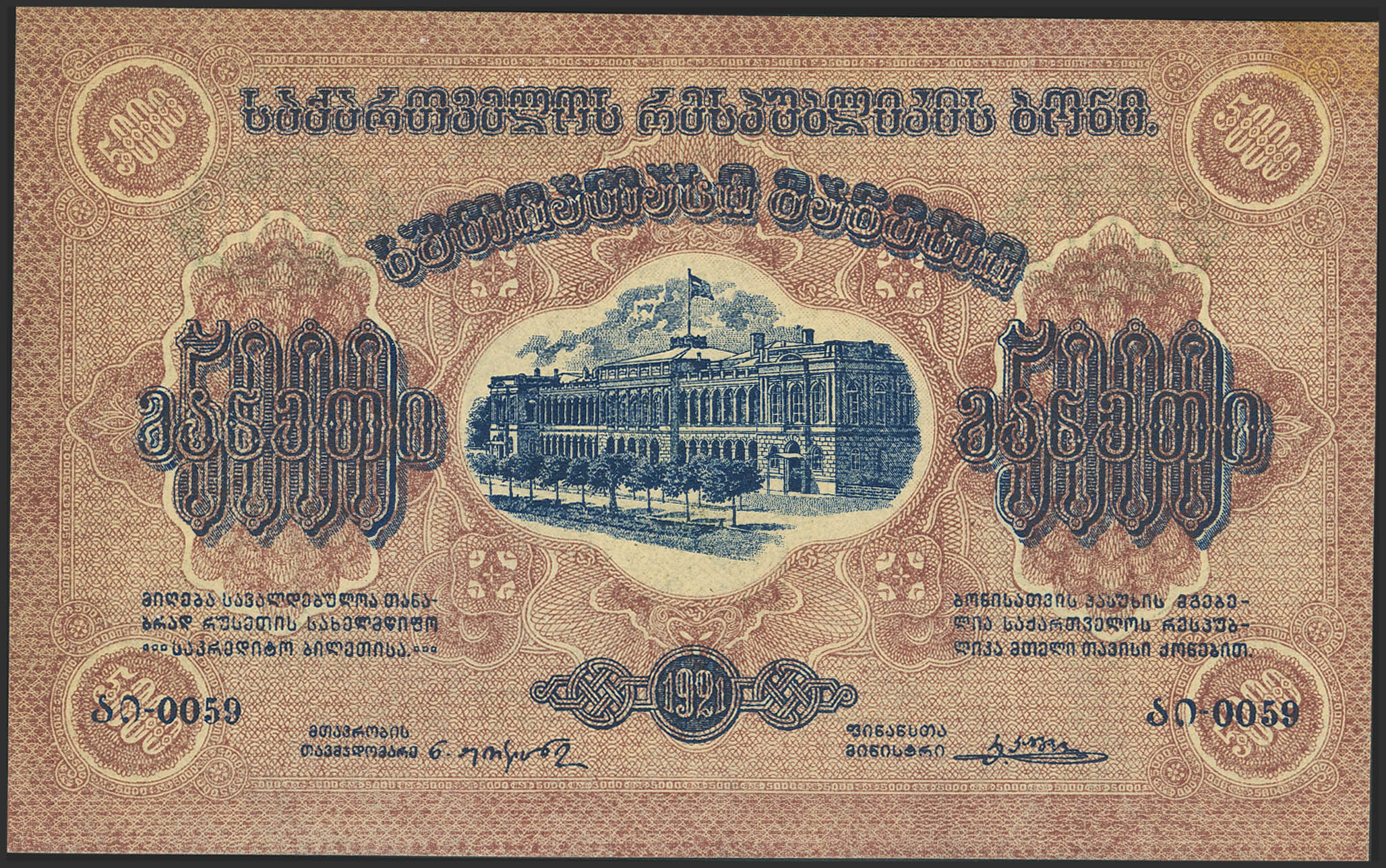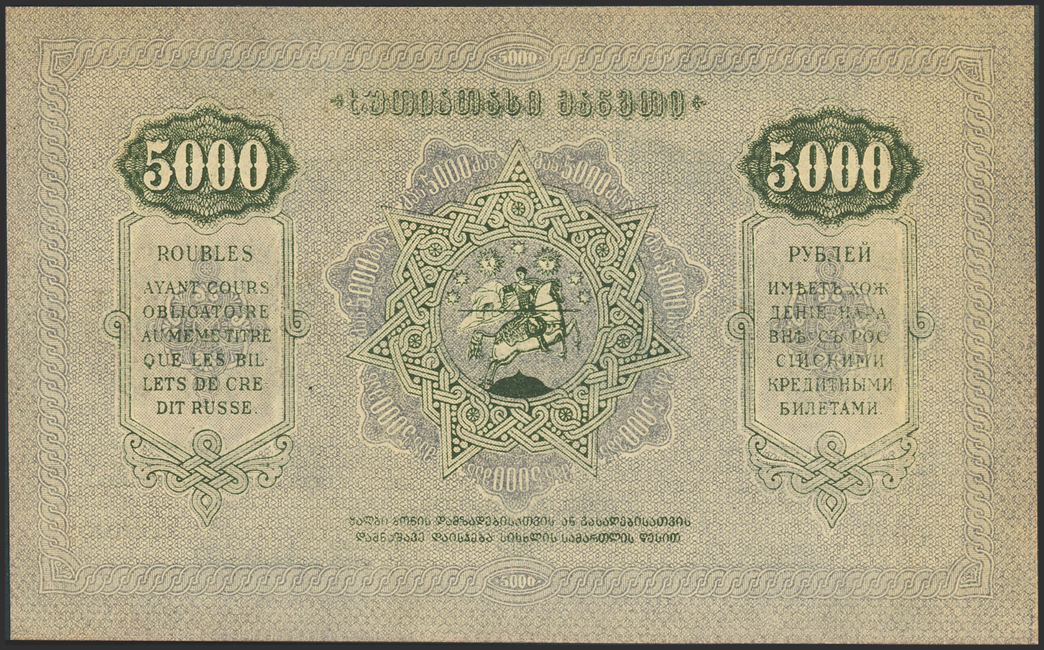 English GEORGIA. 5000 Maneti. 1921. Georgian Republic. (Pick: 15b). Less than Uncirculated.