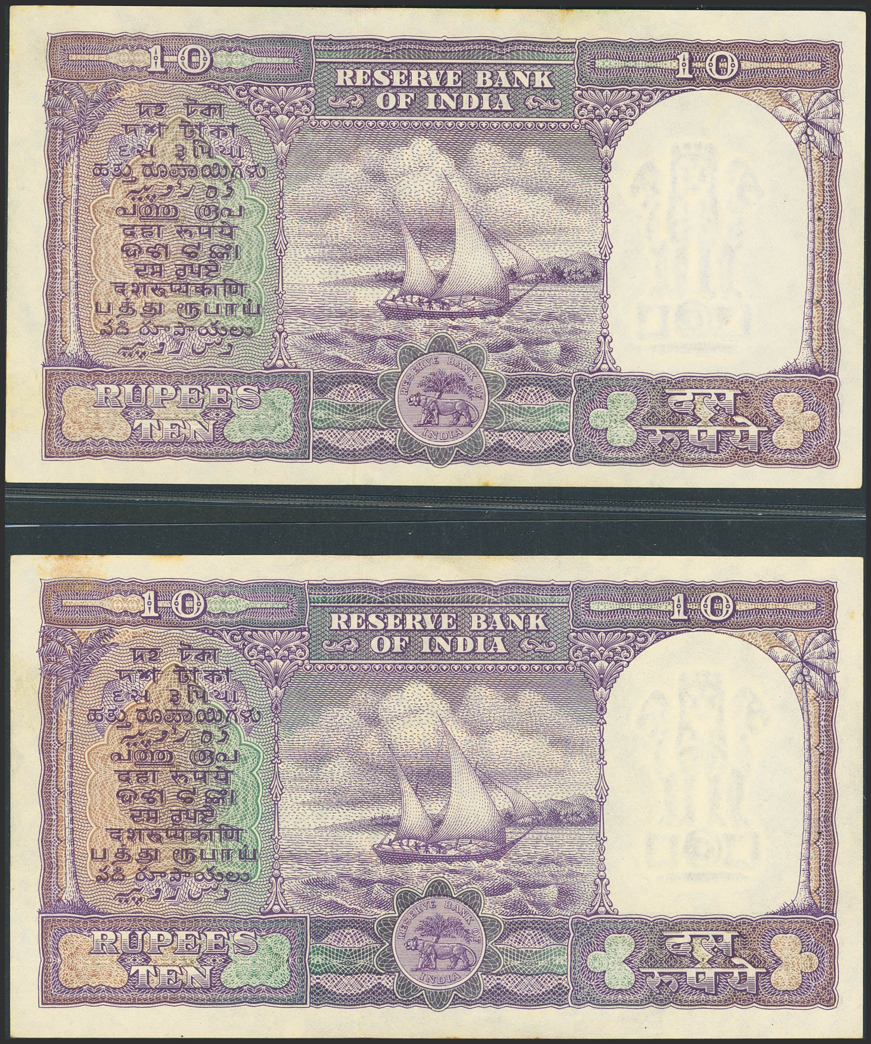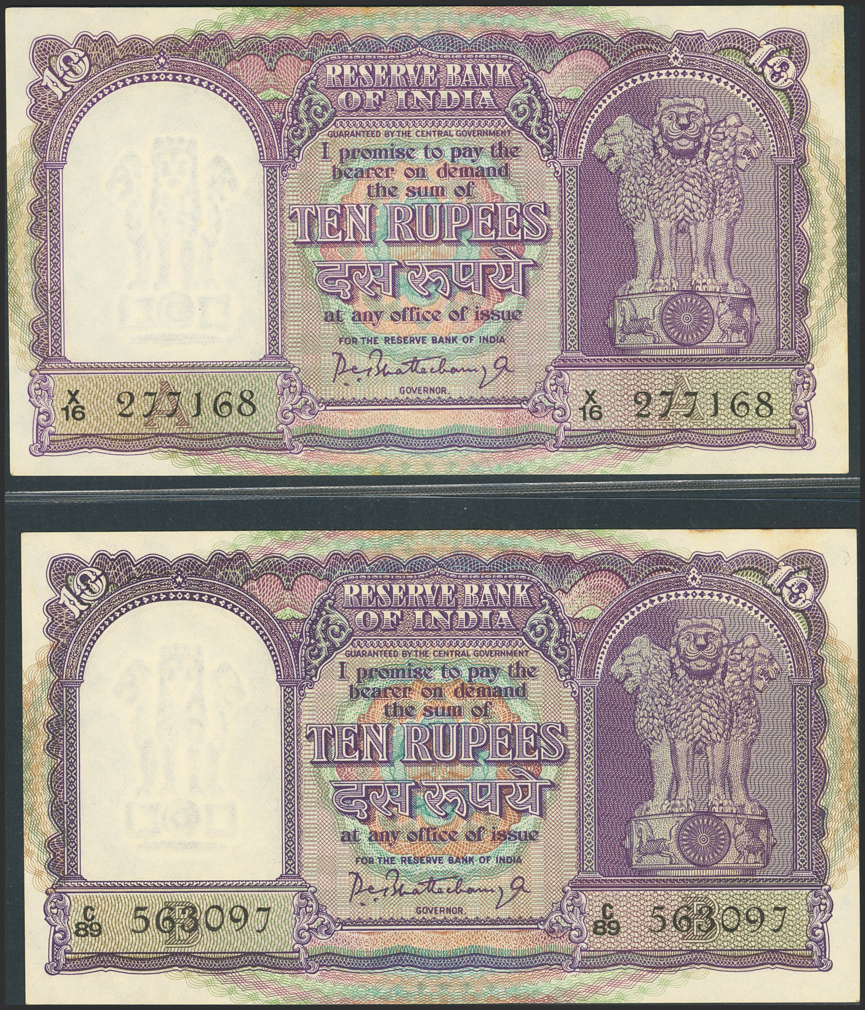 INDIA. 10 Rupees. (1962ca). Reserve Bank. Bhattacharya. (Pick: 40a, 40b). Uncirculated, staple holes at issue.