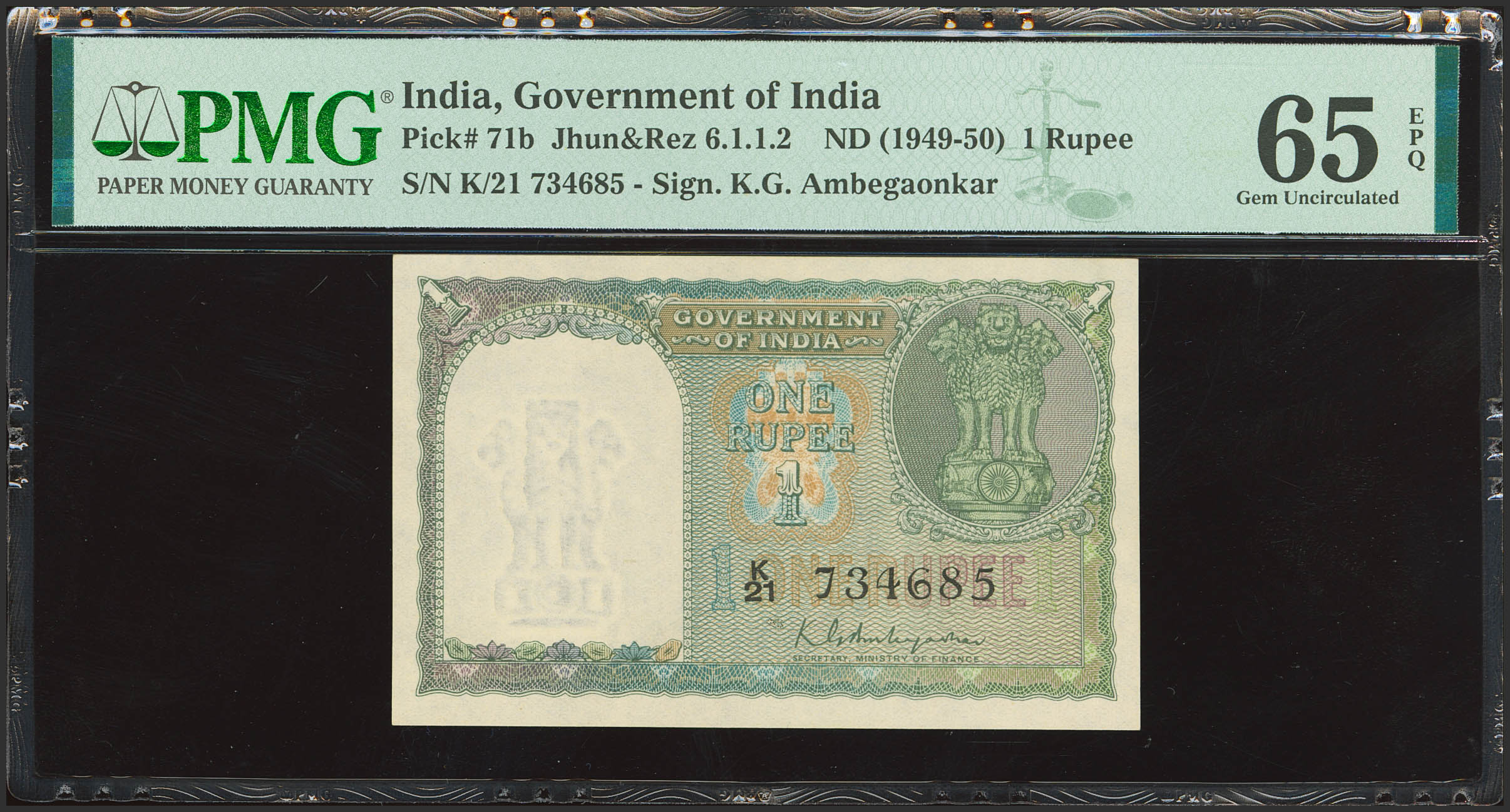 INDIA. 1 Rupee. (1949ca). Government. KG Ambegaonkar. (Pick: 71b). PMG65EPQ.