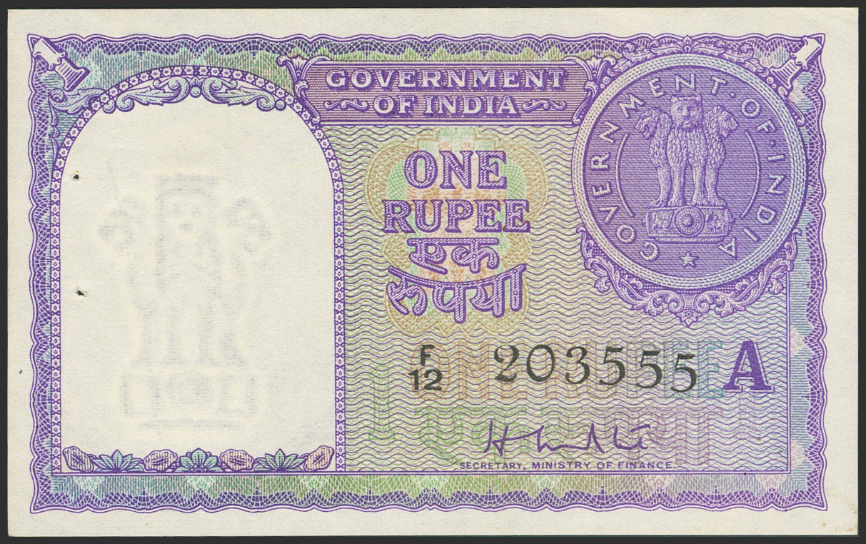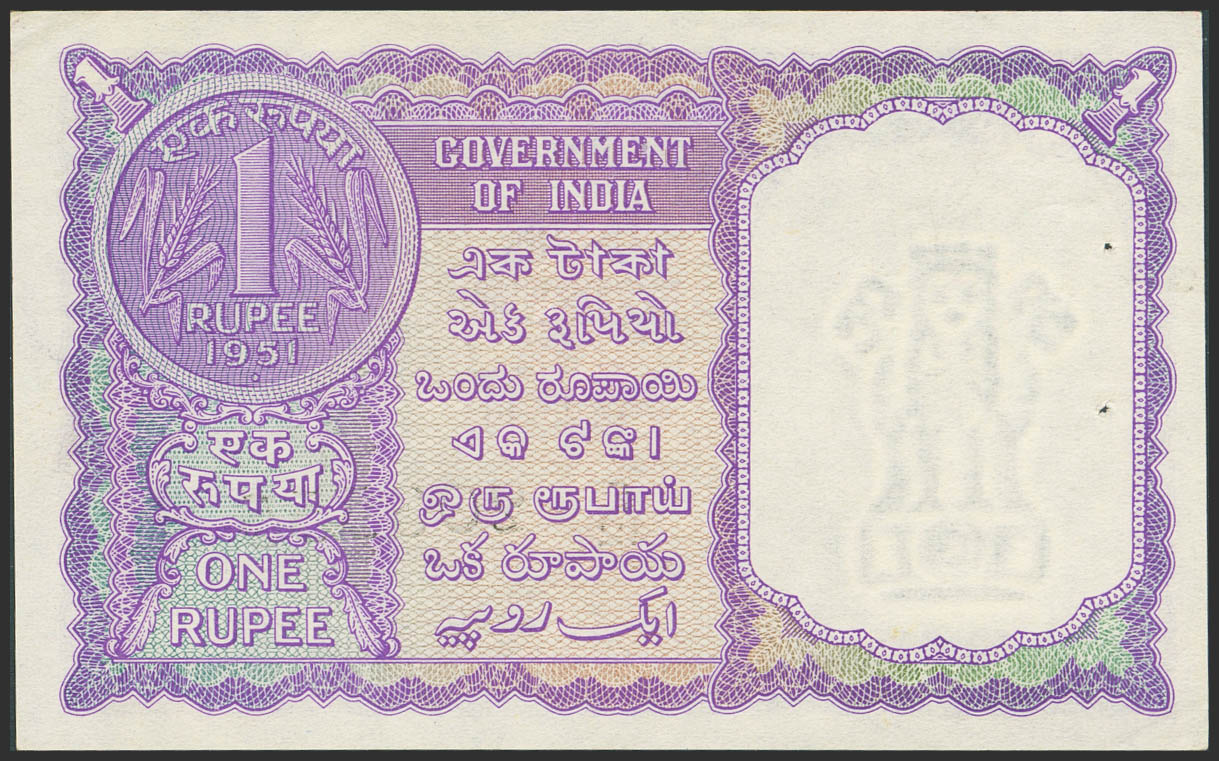 English INDIA. 1 Rupee. 1951. Government. HM, patel. (Pick: 74b). More than Extremely Fine, staple holes at Issue.