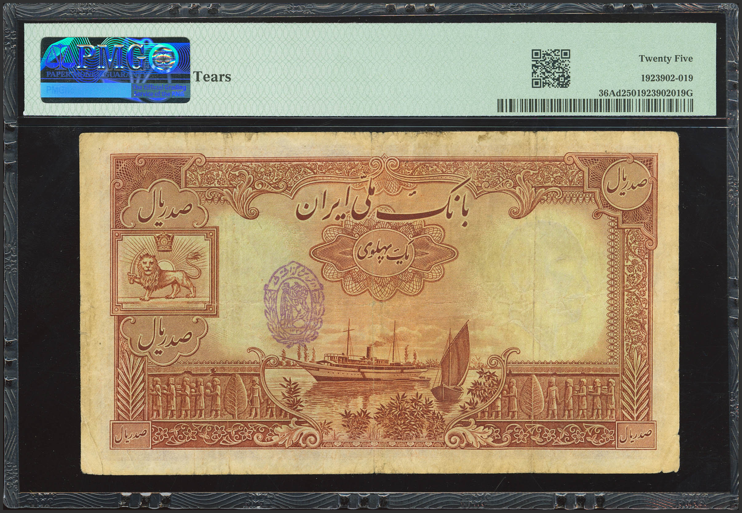 IRAN. 100 Rials. (1941ca). Bank Melli Iran. SH3120. (Pick: 36Ad). PMG25 (tears).