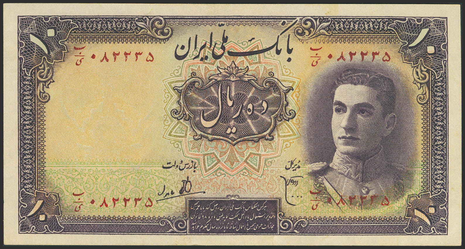 English IRAN. 10 Rials. (1944ca). Bank Melli Iran. (Pick: 40). Almost Uncirculated.
