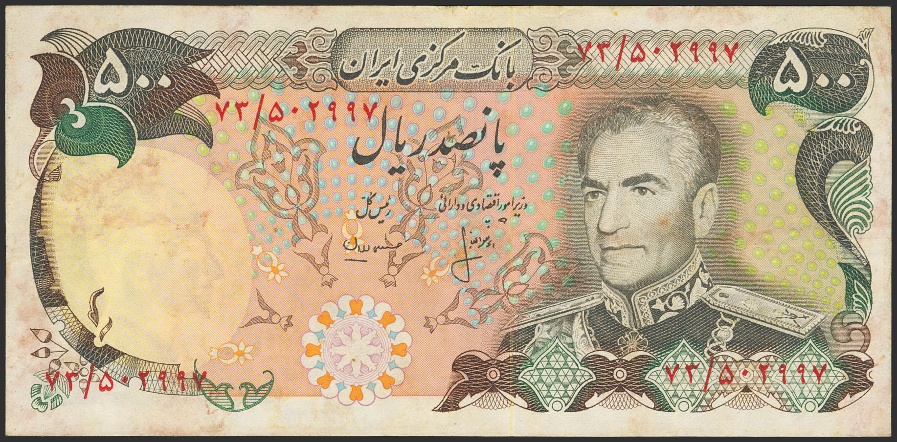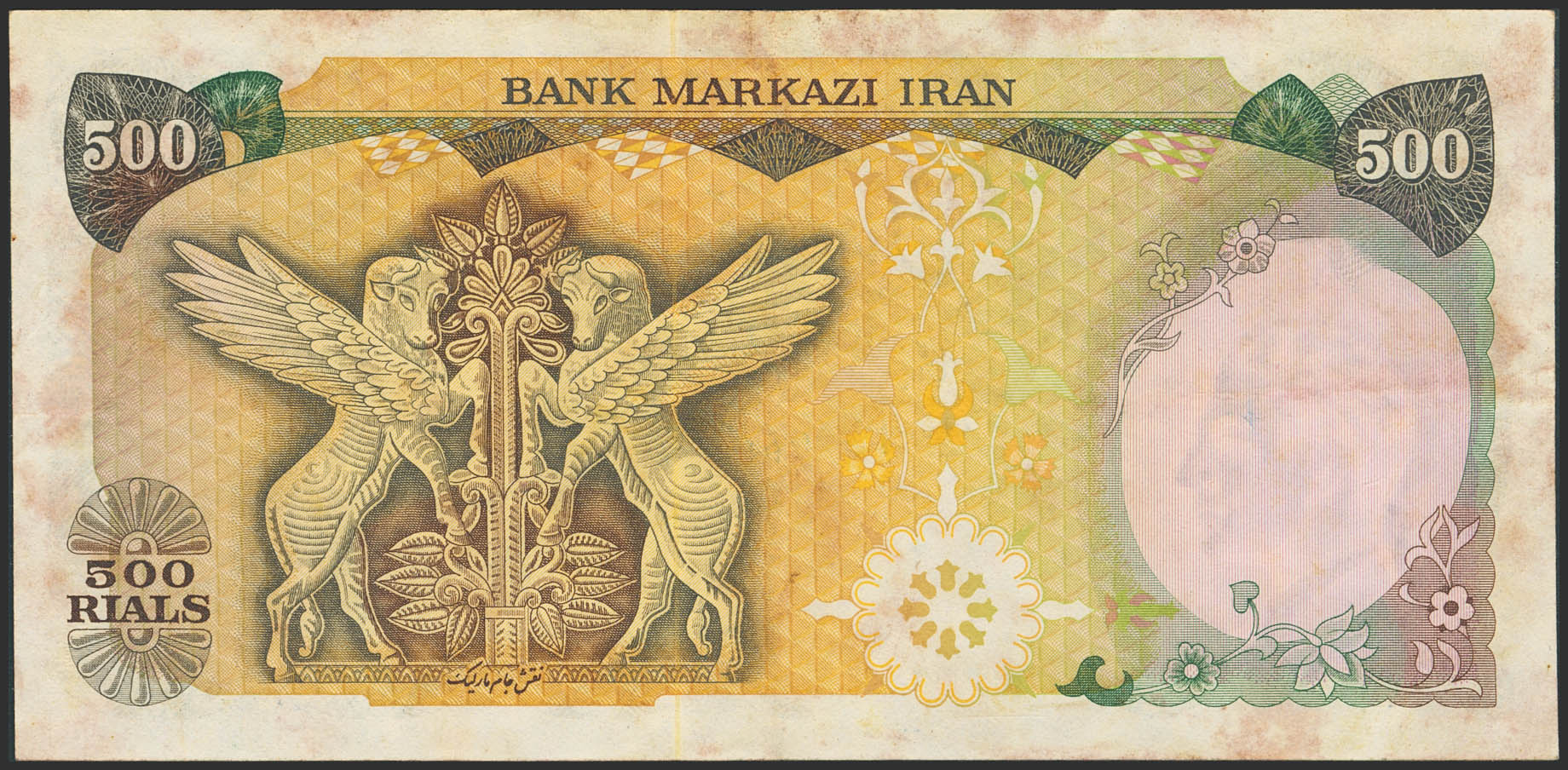 IRAN. 500 Rials. (1974ca). Bank Markazi Iran. (Pick: 104b). Dirty. Extremely Fine.