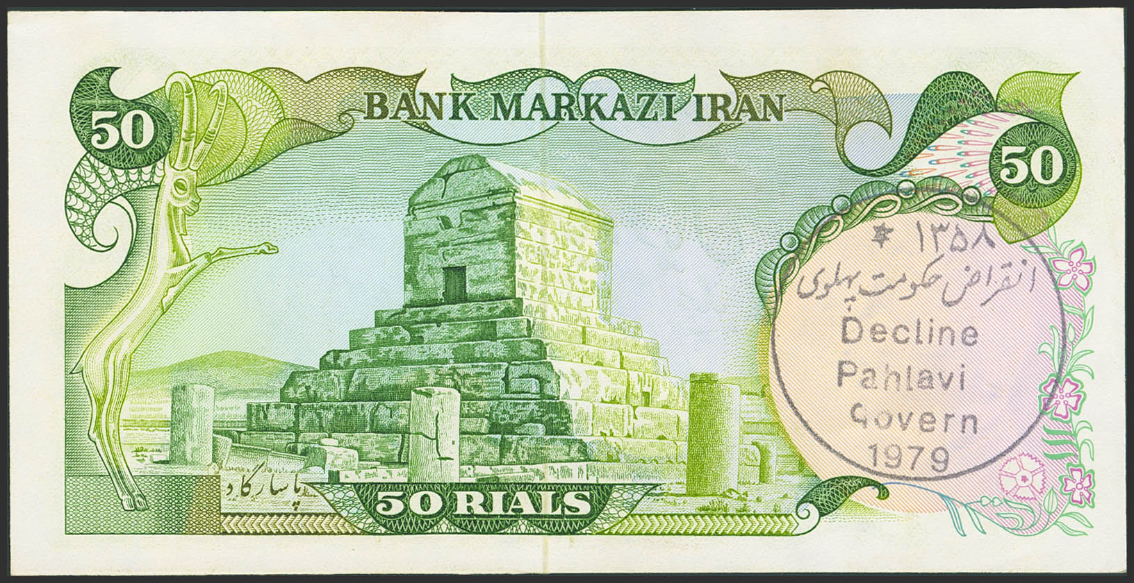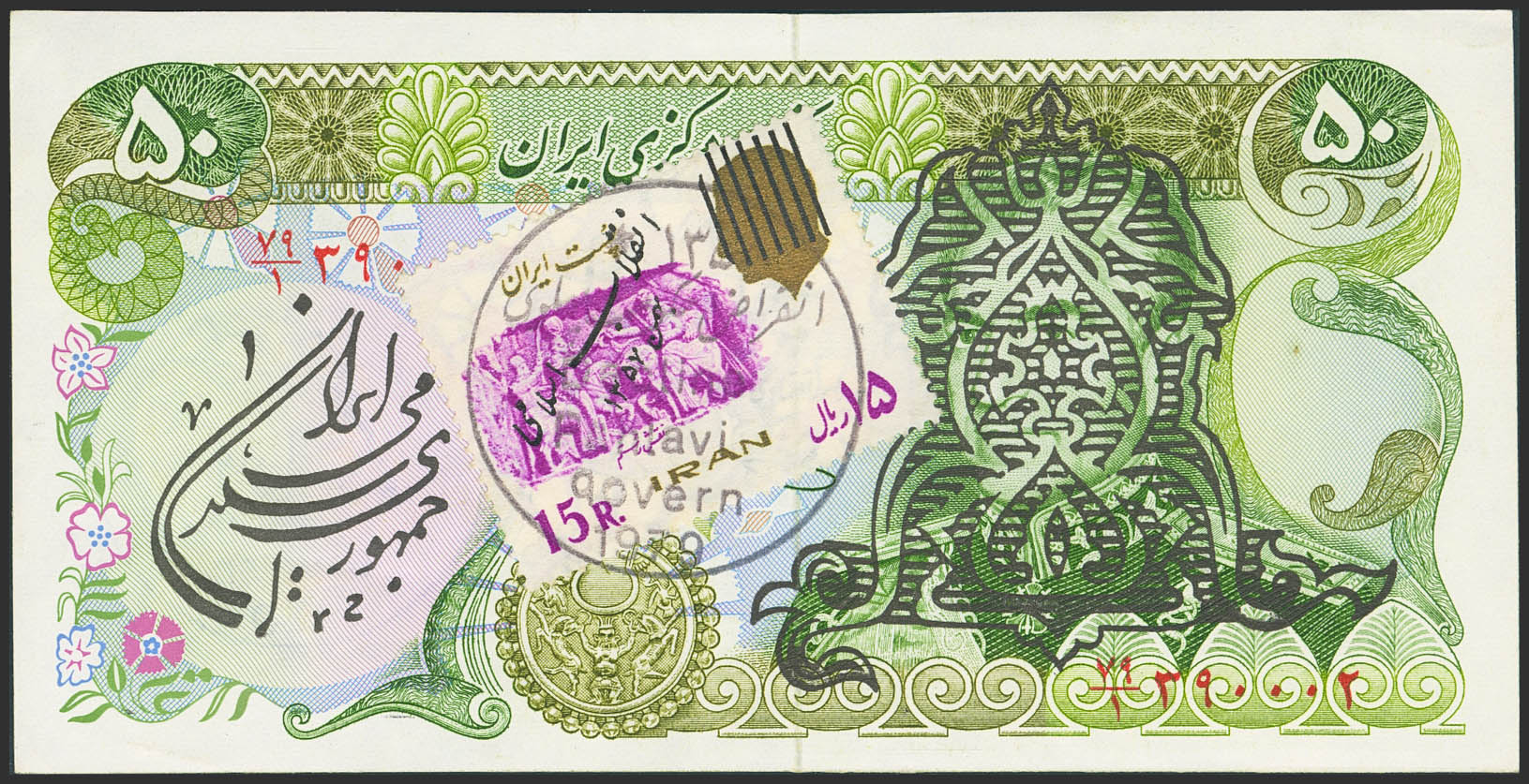 IRAN. 50 Rials. (1979ca). Bank Markazi Iran. Revalidated. (Pick: 123a). Uncirculated.