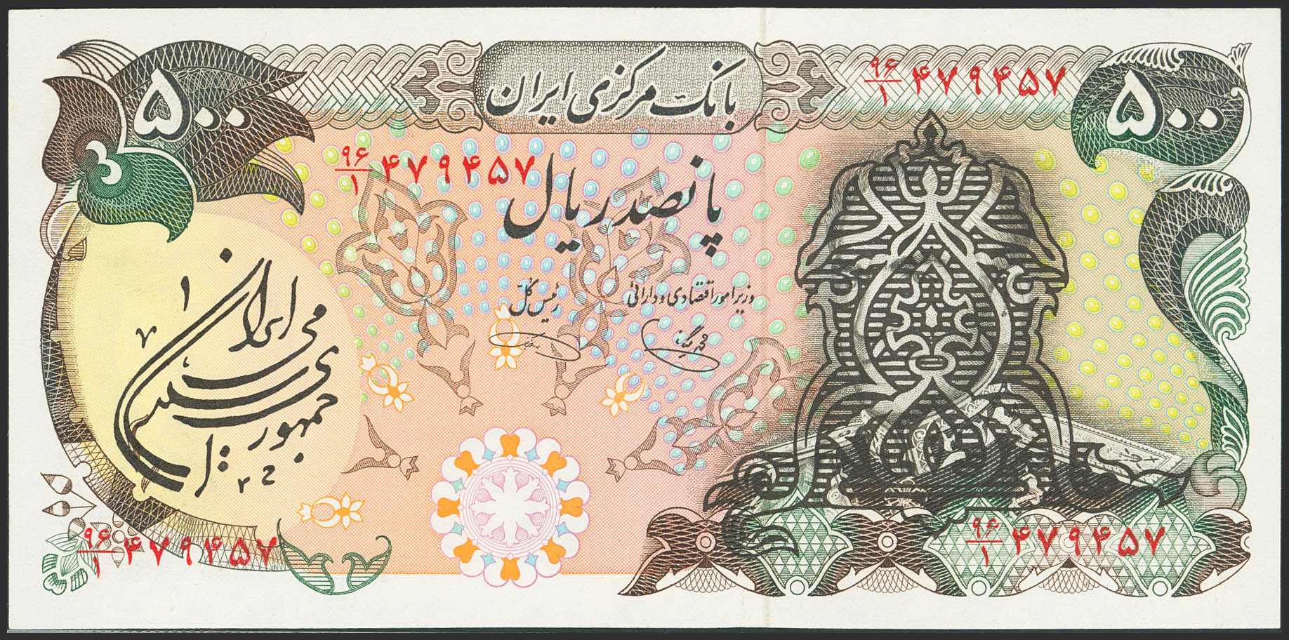 English IRAN. 500 Rials. (1979ca). Bank Markazi Iran. (Pick: 124b). Uncirculated.