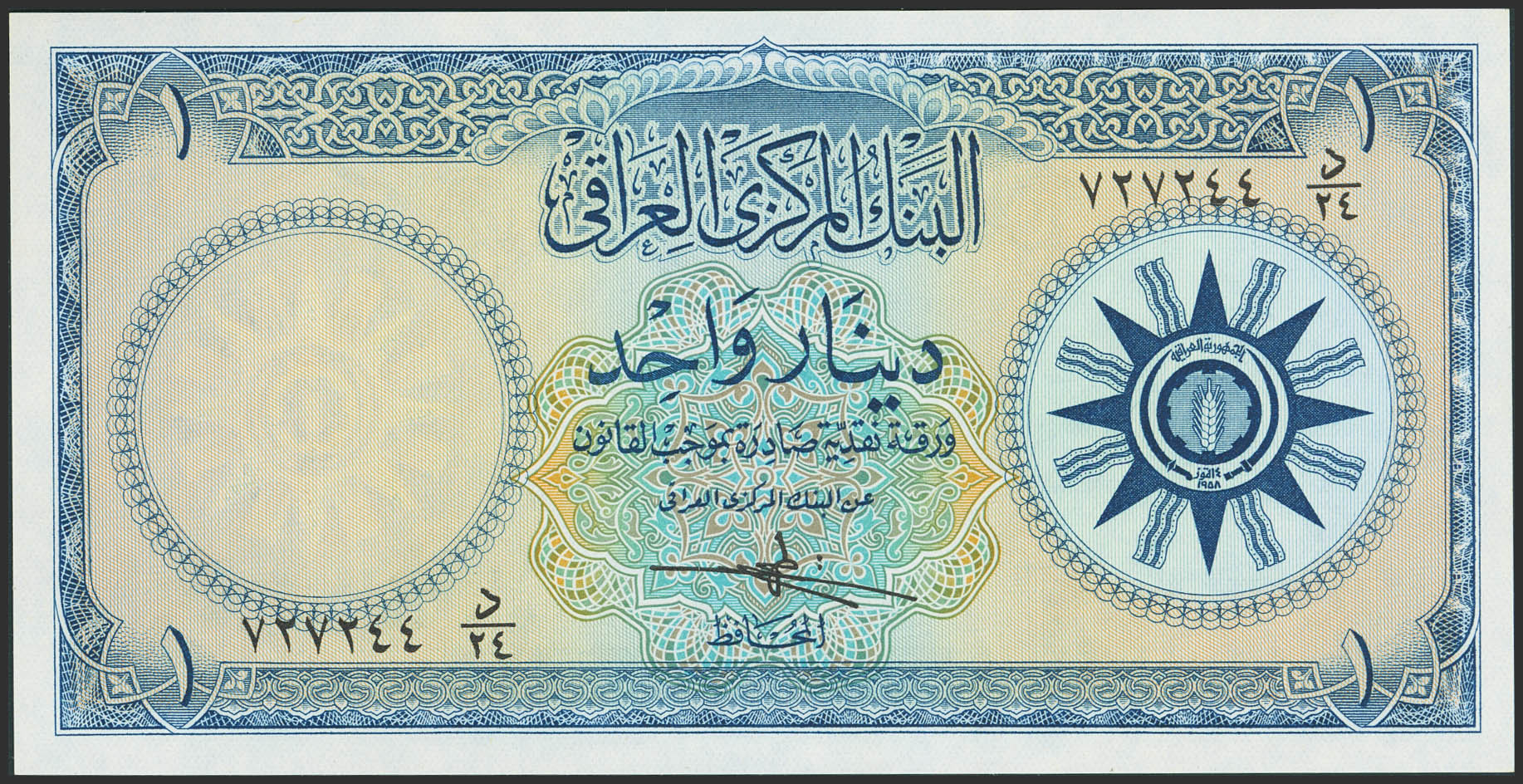 IRAQ. 1 Dinar. (1959ca). Central Bank. (Pick: 53a). Uncirculated.