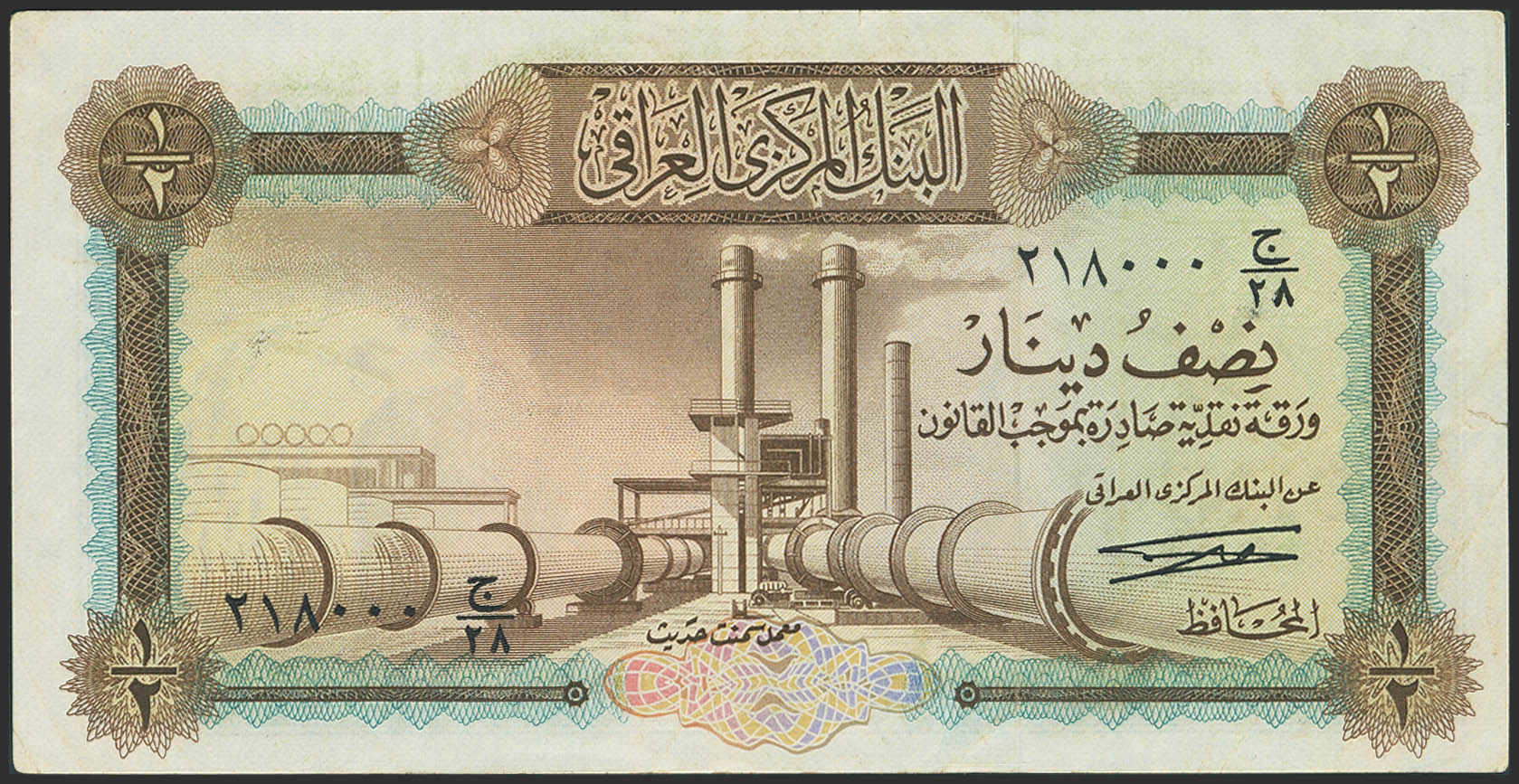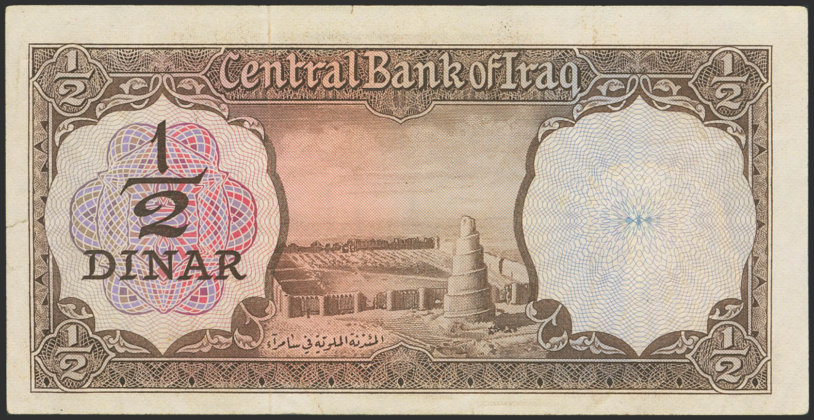 English IRAQ. ½ Dinar. (1969ca). Central Bank. (Pick: 57). Extremely Fine.
