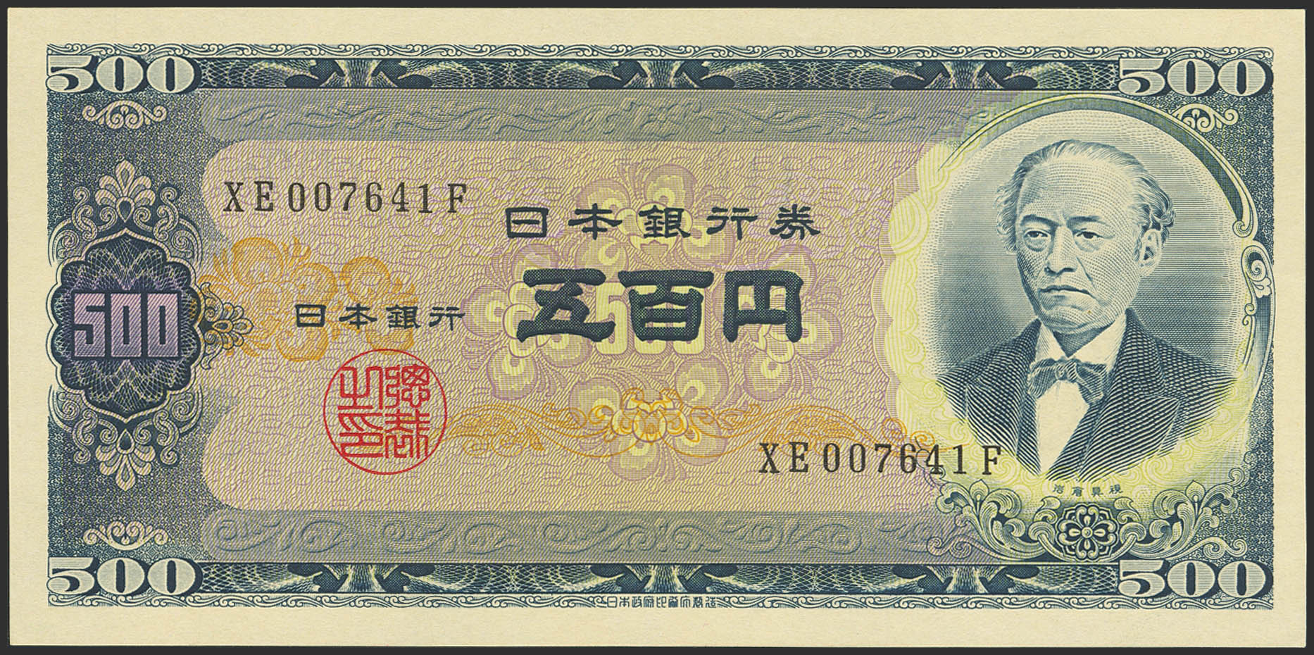 English JAPAN. 500 Yen. (1951ca). Bank of Japan. (Pick: 91c). Almost Uncirculated.