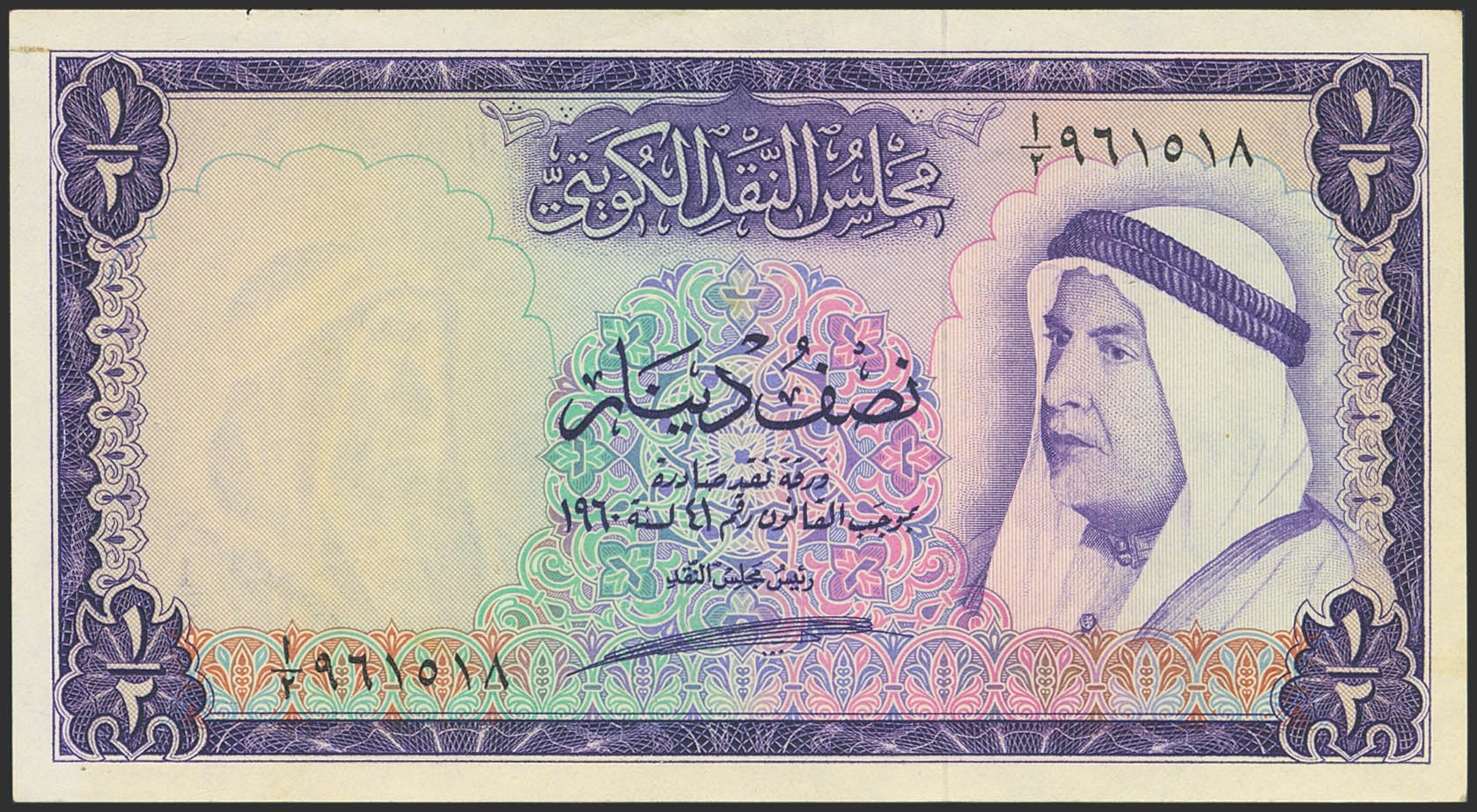 KUWAIT. 0.5 Dinar. 1960. Currency Board. (Pick: 2). More than Extremely Fine.