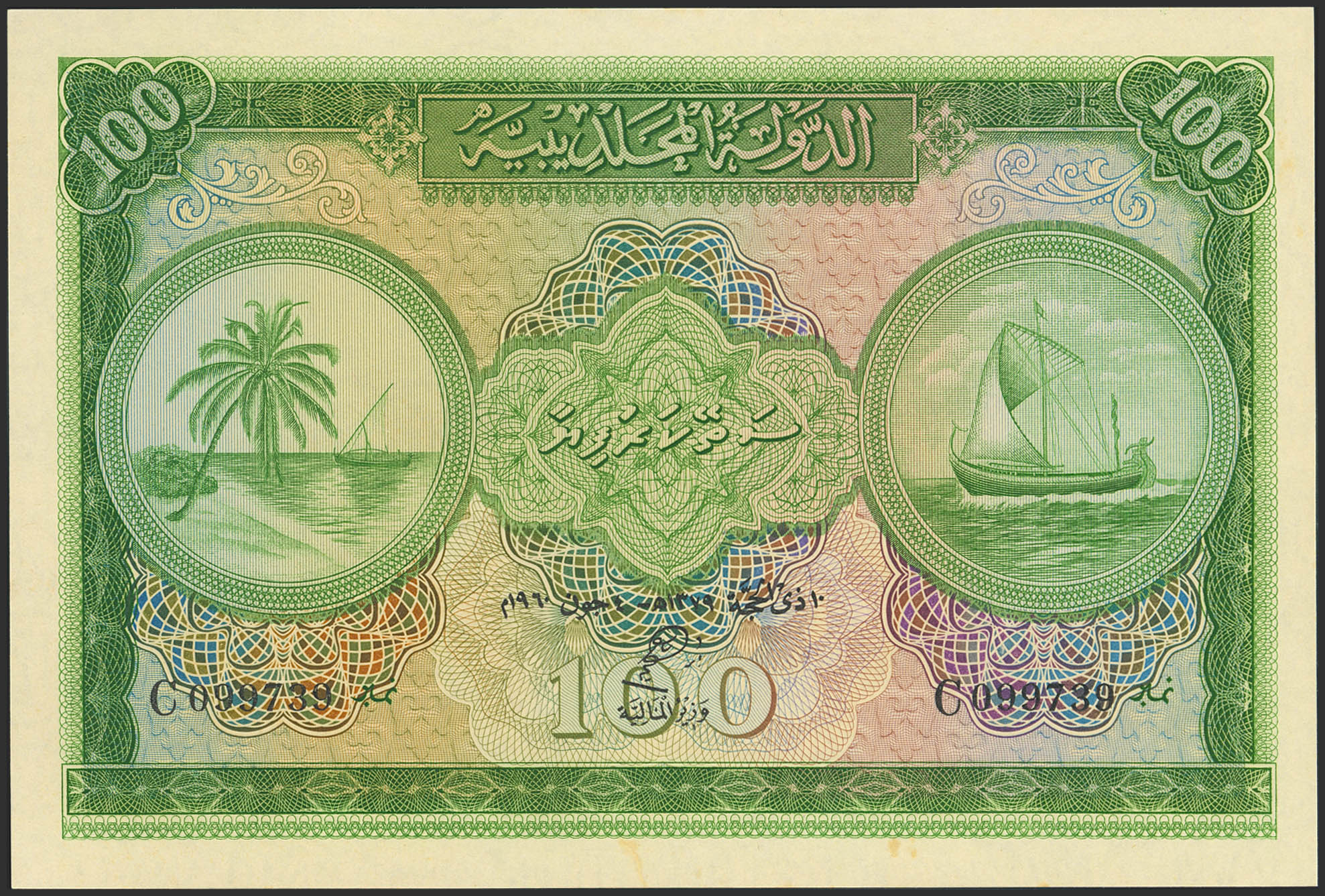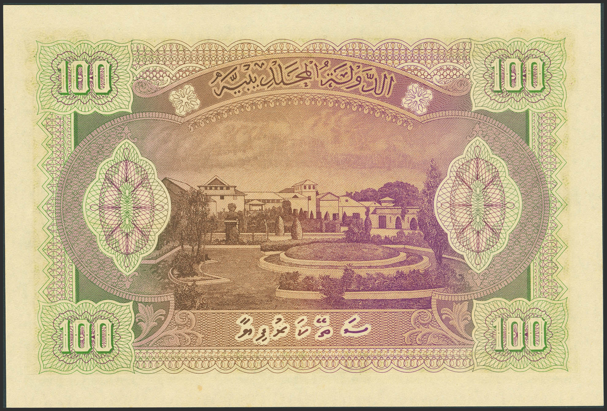 MALDIVES. 100 Rupees. 1960. Government Treasurer. (Pick: 7b). Uncirculated.