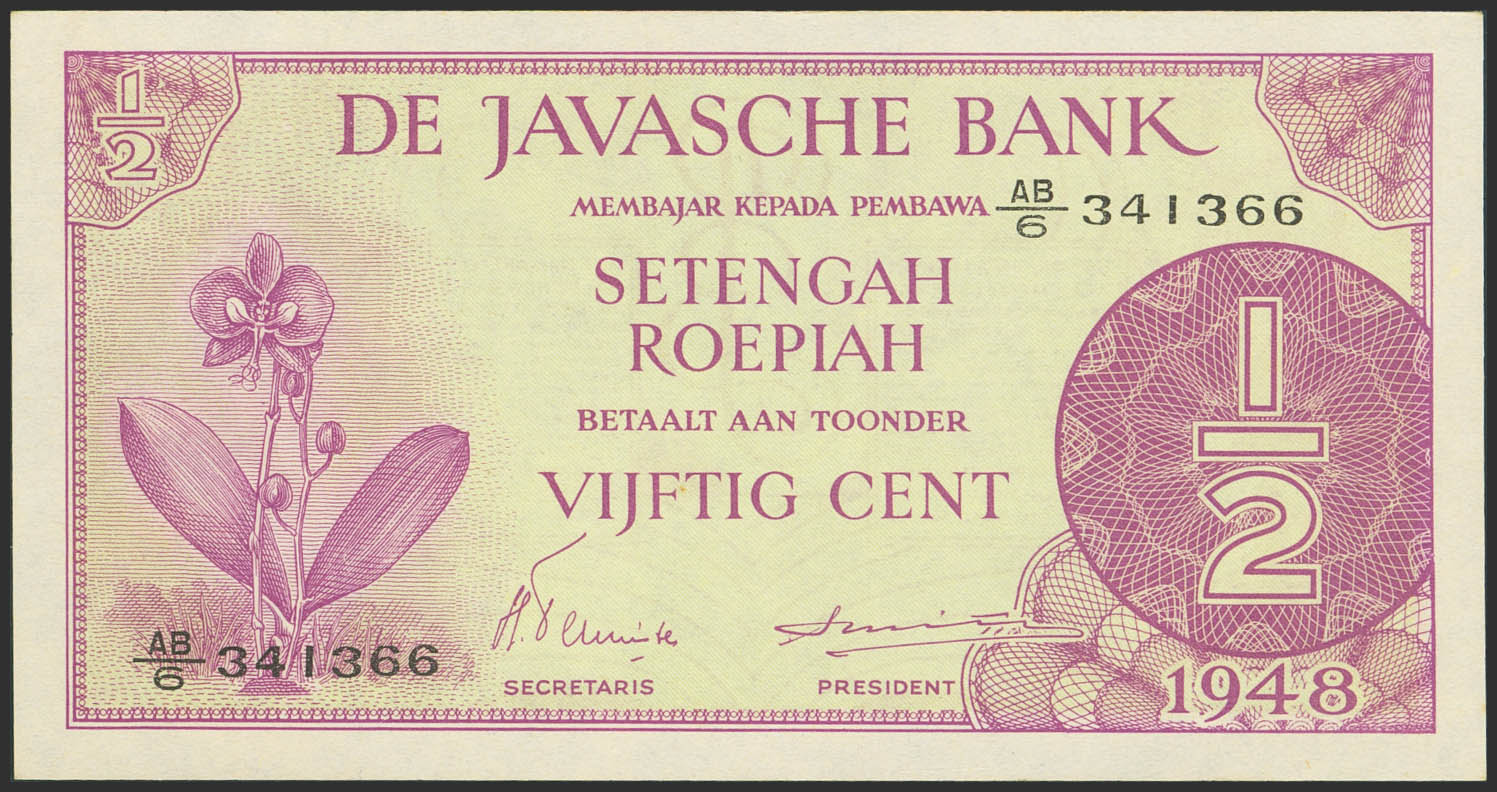 NETHERLANDS INDIES. ½ Roepiah. 1948. Javasche Bank. (Pick: 97). Uncirculated.