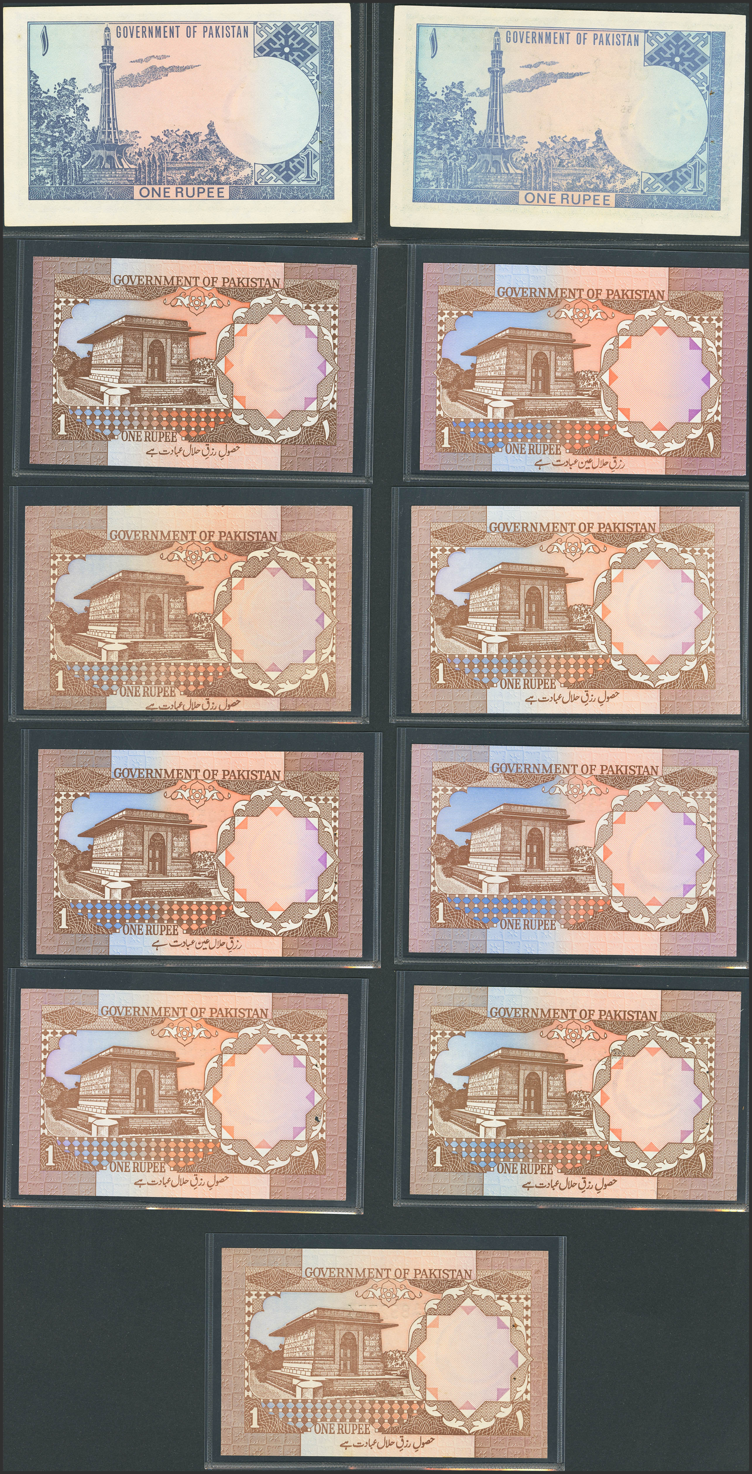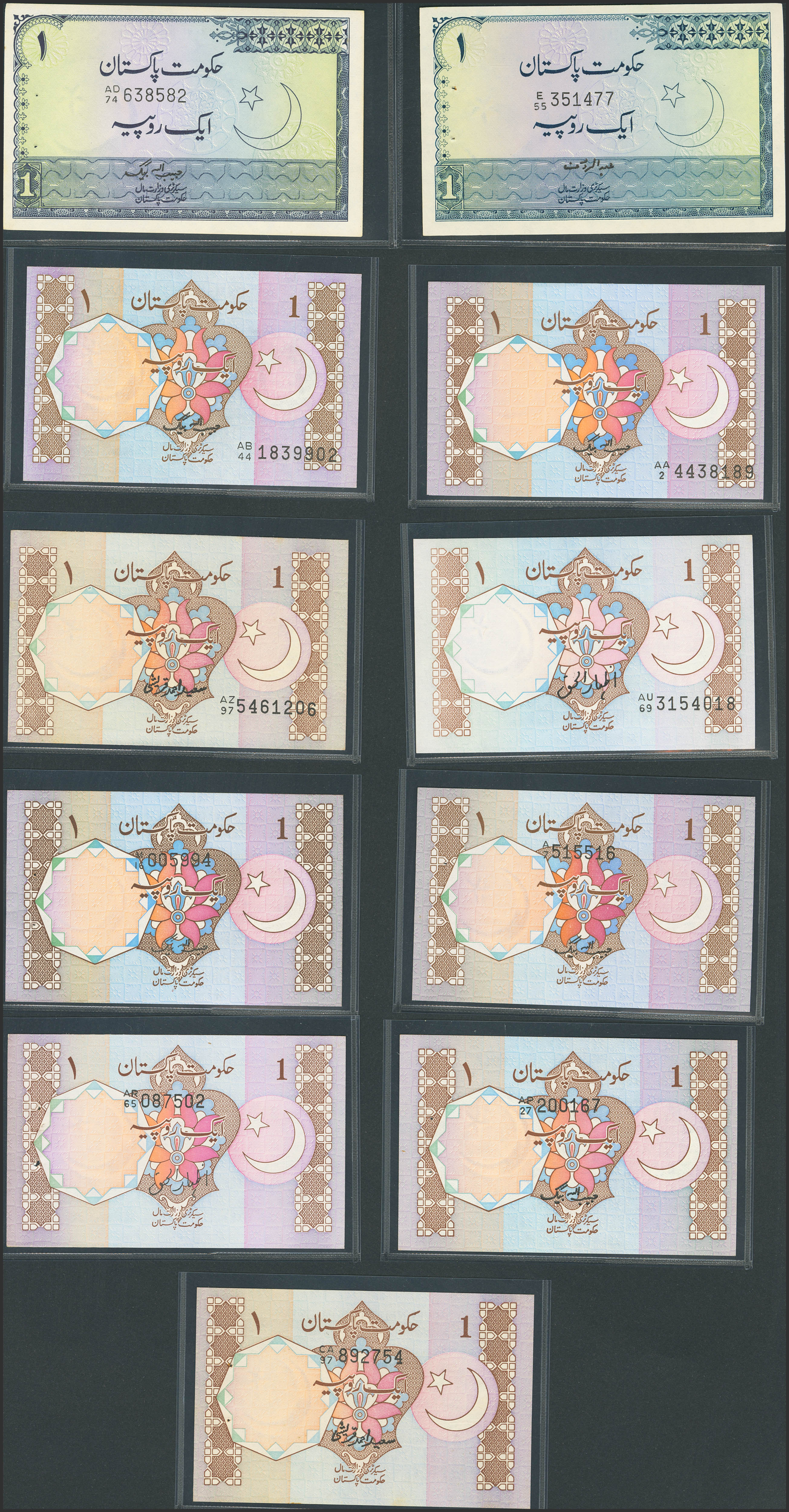 PAKISTAN. Lot of 11 notes of 1 Rupee. (1981ca). Government. (Pick: Mixed). Less than Uncirculated.
