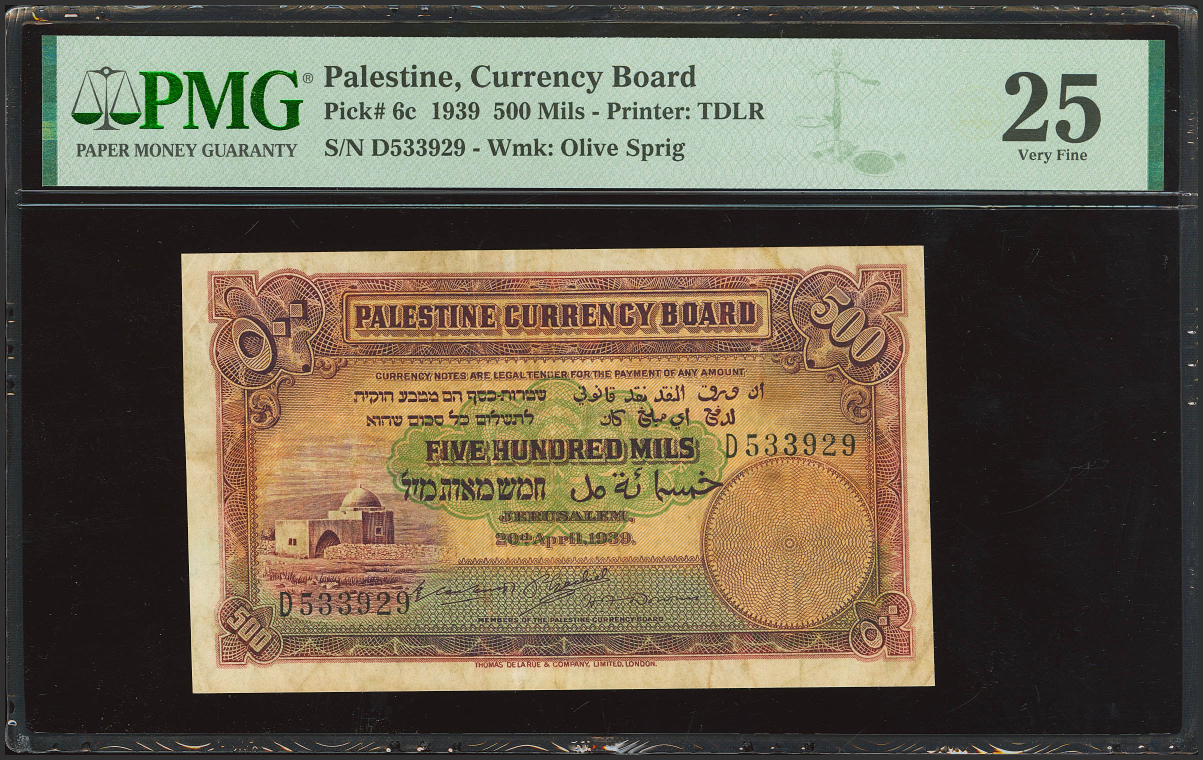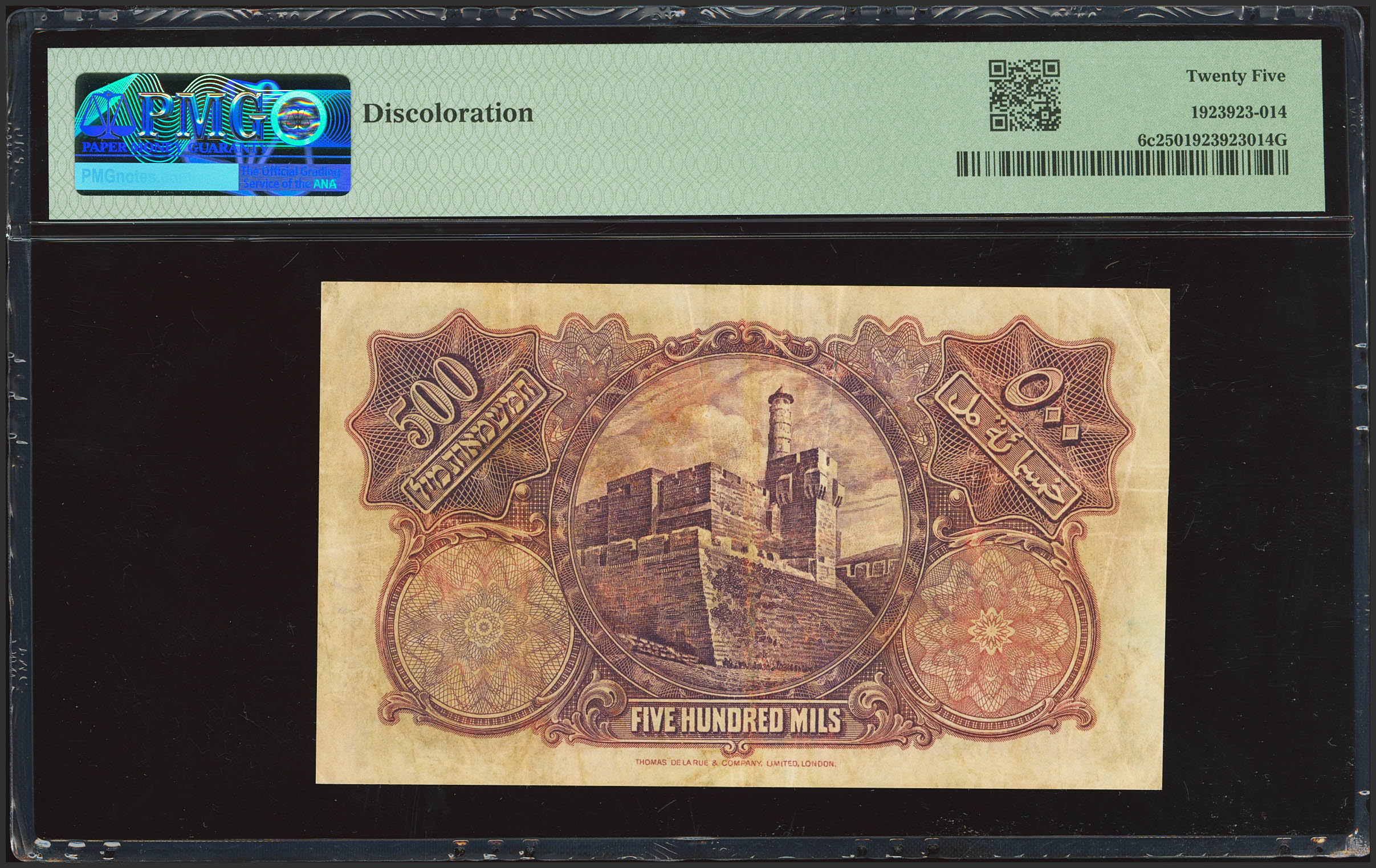 PALESTINE. 500 Thousands. 20 April 1939. Currency Board. (Pick: 6c). PMG25 (discoloration).