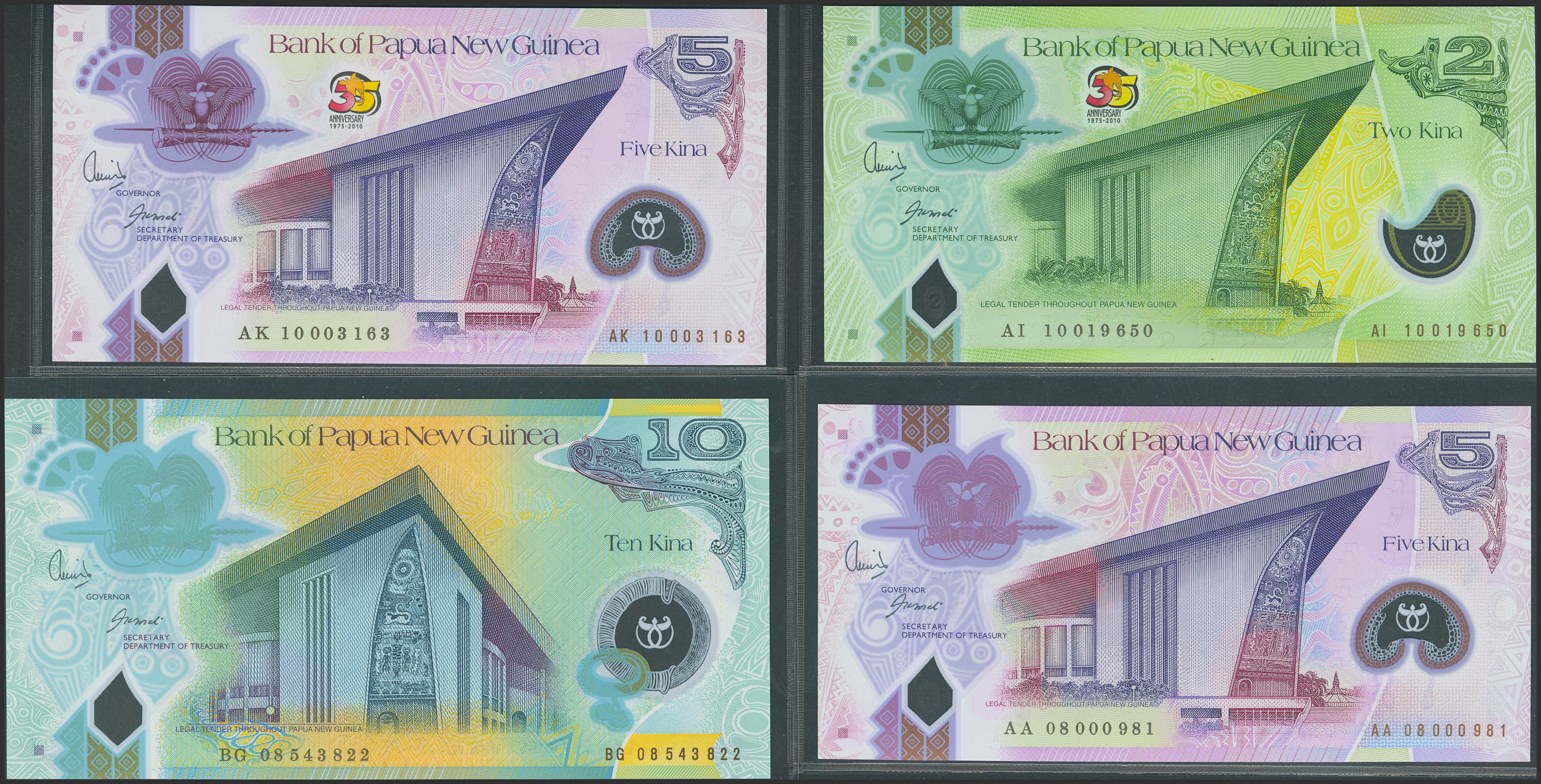 PAPUA NEW GUINEA. Lot of 4 notes of 2, 5 and 10 Kina. 2008-2010. Bank of Papua New Guinea. (Pick: 29a, 30a, 38, 39). Uncirculated.
