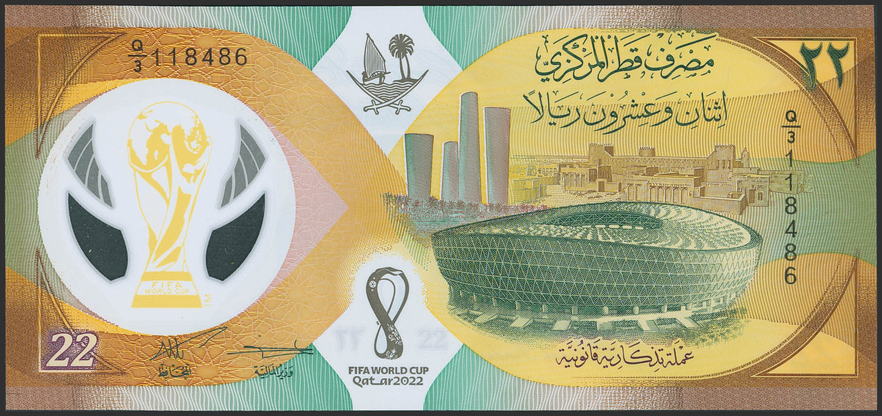 QATAR. 22 Riyals. 2022. Central Bank. (Pick: 39). Uncirculated.