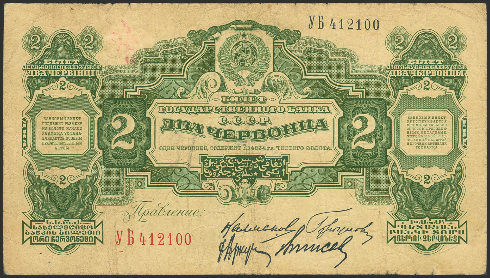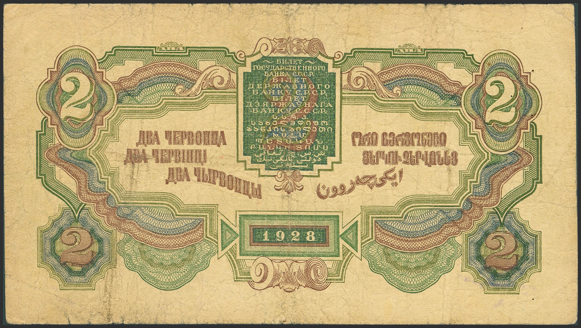 RUSSIA-SOVIET UNION. 2 Chervonets. 1928. Gosudarstvenniy Bank SSSR. (Pick: 199c). Pinholes, pink ink stain on front. Fine.