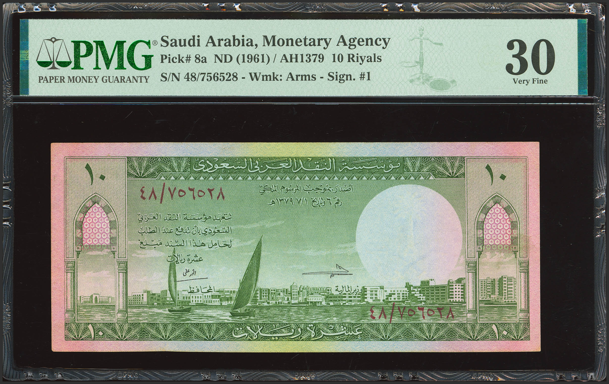 SAUDI ARABIA. 10 Riyals. 1961. Saudi Arabian Monetary Agency. (Pick: 8a). PMG30.