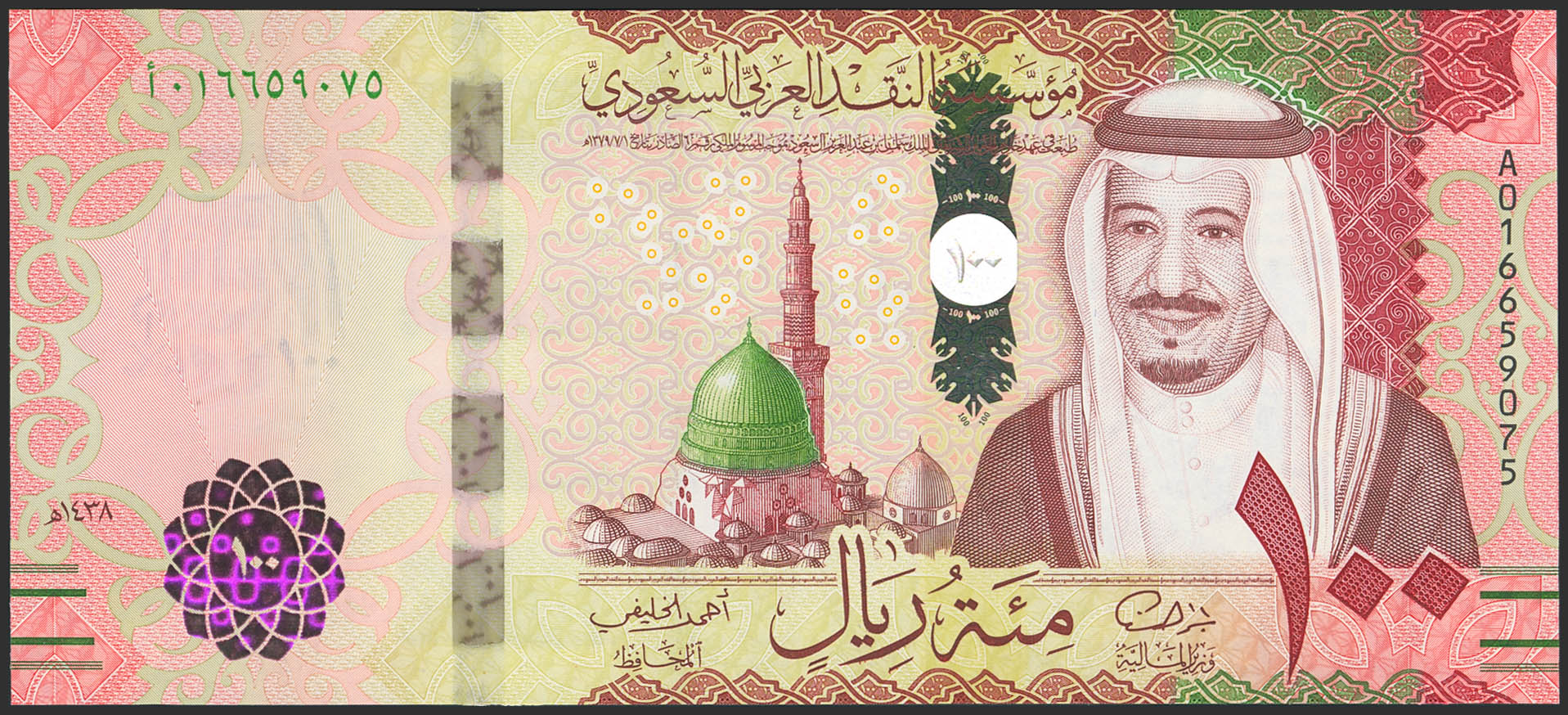 SAUDI ARABIA. 100 Riyals. 2016. Saudi Arabian Monetary Agency. (Pick: 41a). Uncirculated.