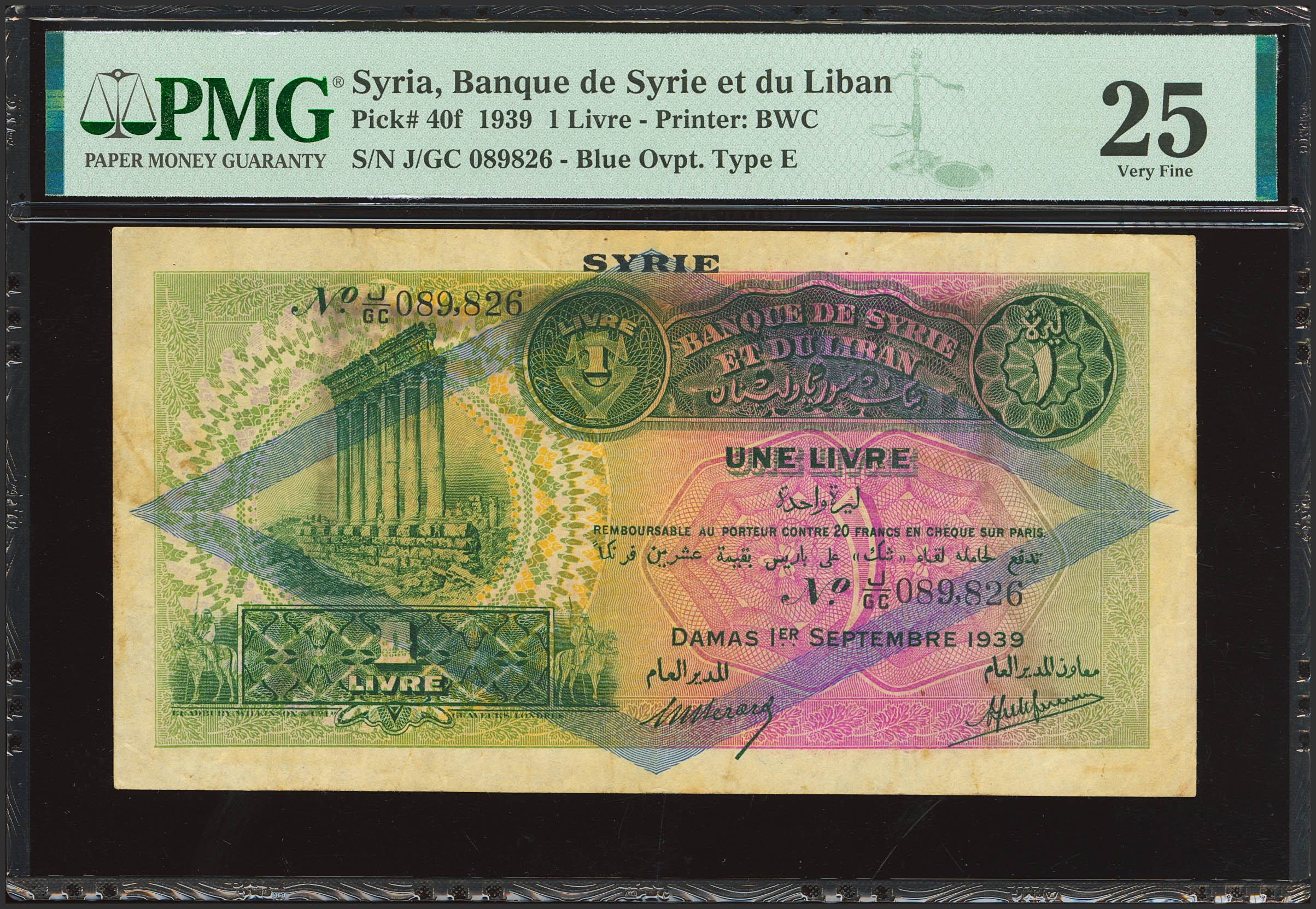 SYRIA. 1 Book. 1 September 1939. Banque de Syrie et du Liban. (Pick: 40f). PMG25.