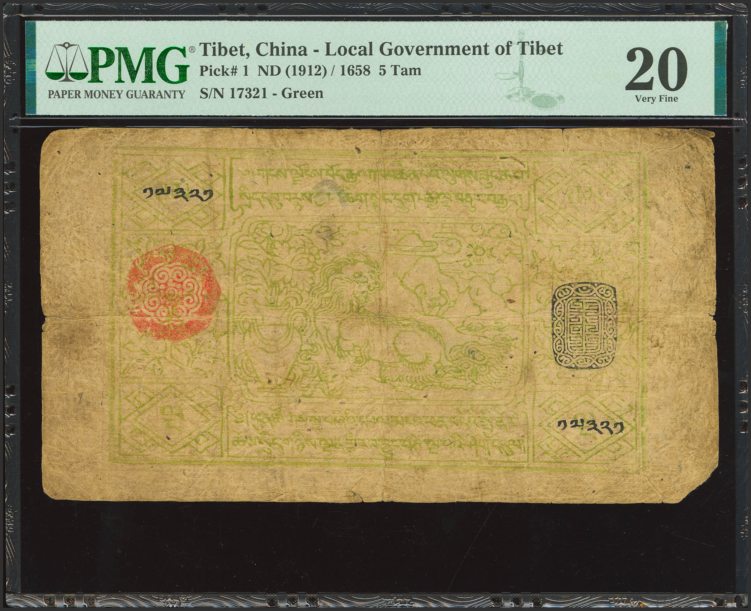 English TIBET. 5 Size 1912. Government. (Pick: 1). PMG20 (rounded corners).