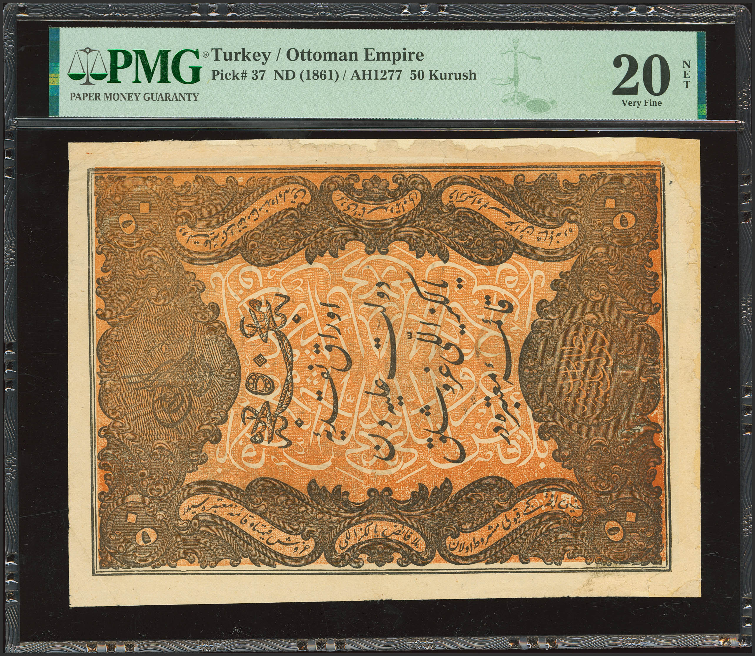 TURKEY. 50 Kurus. 1861. Treasury. Toughra of Abdul Aziz. (Pick: 37). PMG20NET (borders reconstructed).